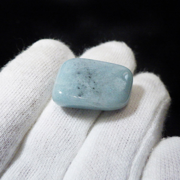 ブラジル産のトロレアイト、タンブルです。トロレアイトは非常に珍しいリン酸塩鉱物で淡青緑色から青みがかった塊で見つかり、ラズライト、スコルザライトとの混合物のため、青く色付いています。発見者のスウェーデンのトロール氏にちなんで名付けられました。トロール=妖精という意味からアセンションストーン(碧い妖精の石)とも呼ばれています。日本ではトロール石とも呼ばれています。ブルーの濃淡や、色味がくすみカラーでかわいいです。