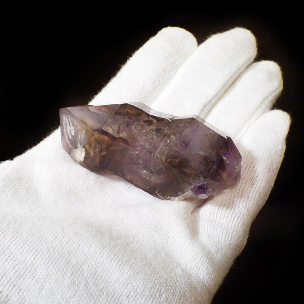 ナミビアのブランドバーグ産、アメジストです。 アメジストエレスチャルと呼ばれる形態のアメジストで全体的にスモーキーがかったパープルをしております。光を当てると内部でキラキラと輝き透明感と相まってうっとりします。ブランドバーグアメジストの産出量は減少中で、今や大変希少なものとなっています。
