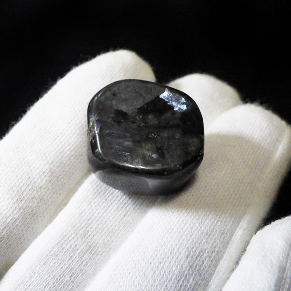 カナダ産のブラックラブラドライト、タンブルです。ラブラドライトは見る角度によってオーロラのような色彩を変えるラブラドレッセンスという美しい光を持つのが特徴です。