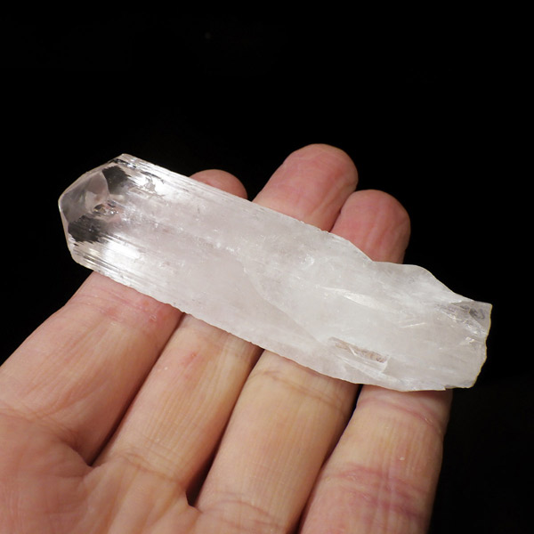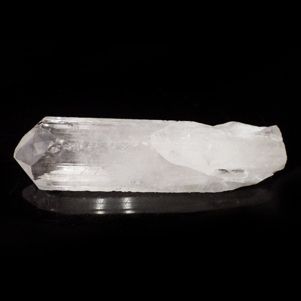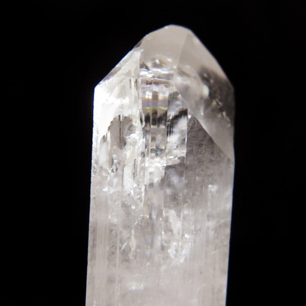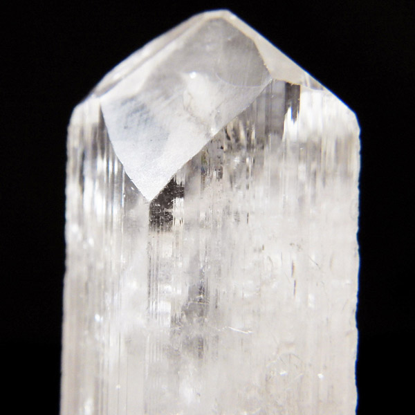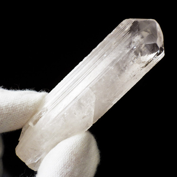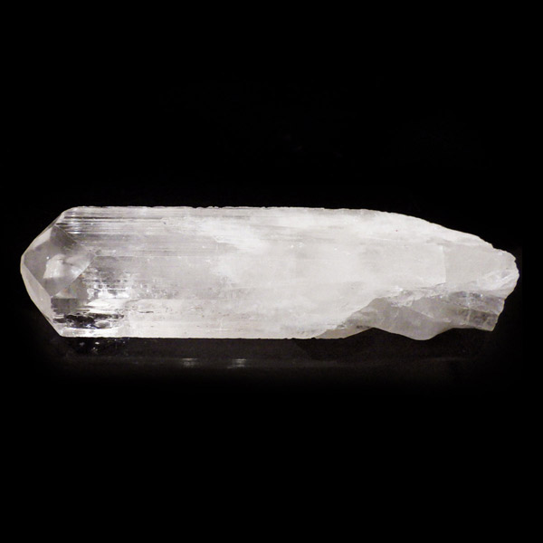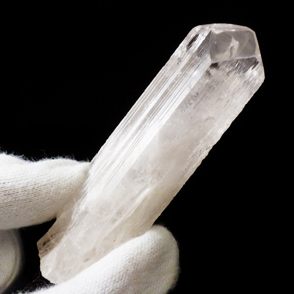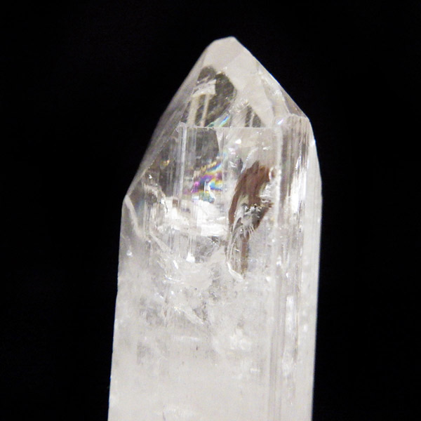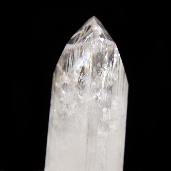 メキシコ産、ダンビュライトの原石です。 ダンビュライトはダイヤモンドの代用品として使われることもある石で、結晶の形はトパーズそっくりです。縦に伸びる表面の条線がくっきり見られ、透明度と輝きは美しいの一言。レインボーも含まれ、基本的に透明ですが、僅かにほんのりとピンク色をしています。程よい大きさの結晶で見ごたえのある高品質な一点です。
