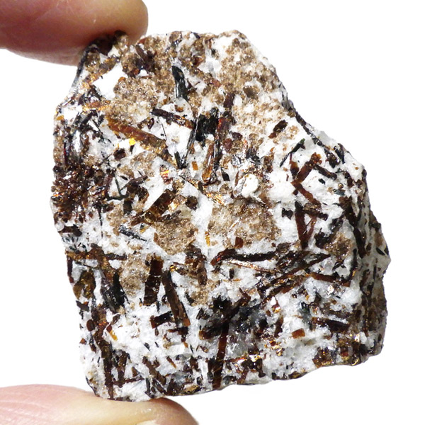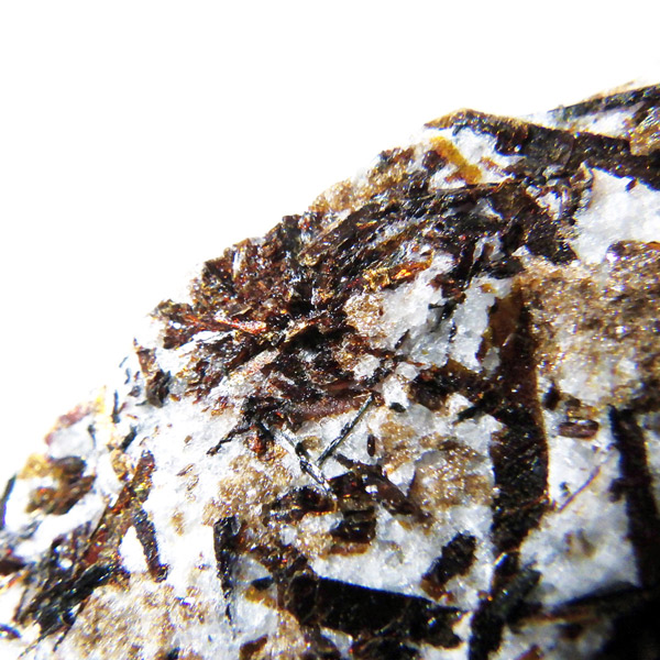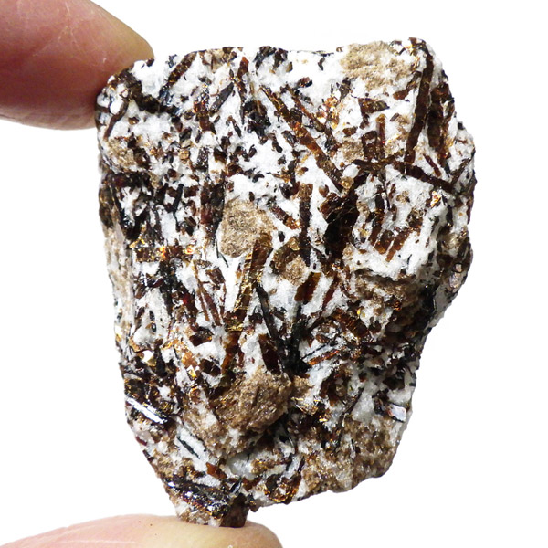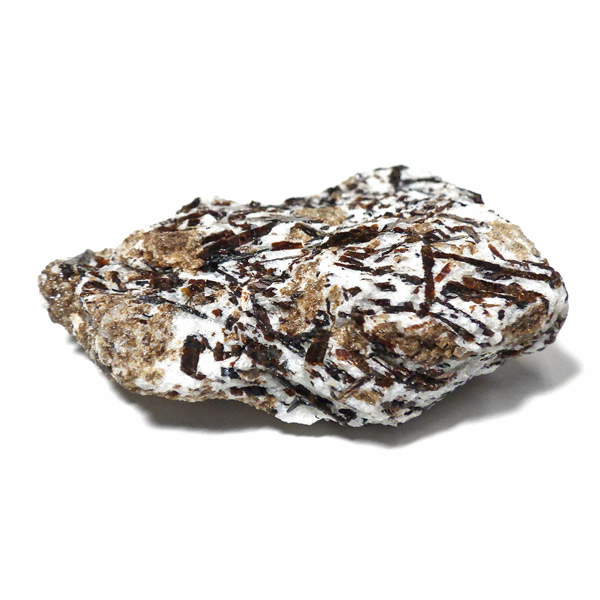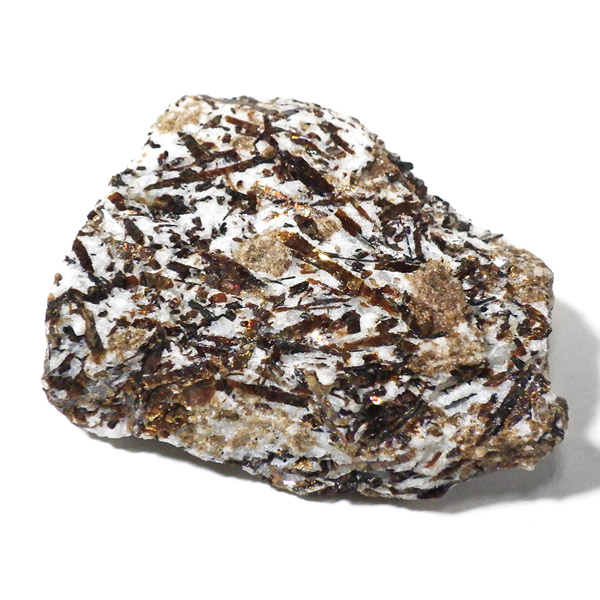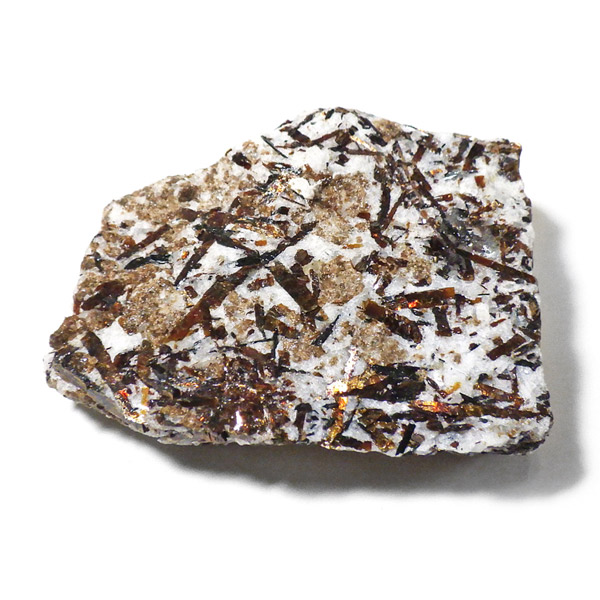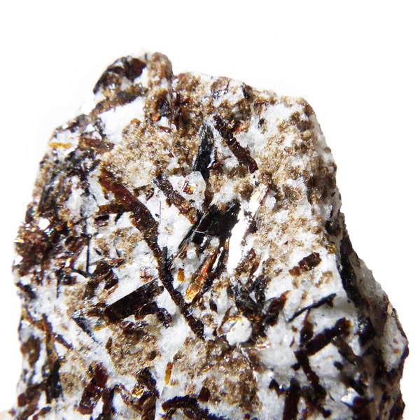 無数の針板状に伸びた結晶の形が特徴で、金属の光は「流れ星」や「太陽」をイメージさせられます。「アストロフィライト」の名前の由来は、ギリシア語の「星」と、「葉」を意味する単語を組み合わせてつけられたものです。和名は星葉石。アルバイト、エジリン、アルベゾナイト、ジルコン、アラゴナイト、ブルッカイトなどと共に産出することが多いとされています。