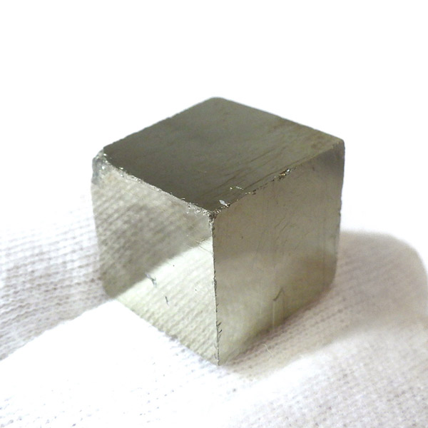 スペインの鉱山から採掘された、最高品質のパイライトキューブ原石です。パイライトは、火山活動の活発な場所で生成される、硫黄と鉄で構成された鉱物の一種です。和名は黄鉄鉱。表面は鉄を含んでいるため鏡のような金属光沢を示します。このパイライトキューブは原石の状態で完全な立方体結晶で、晶癖が味わい深く大変魅力的です。