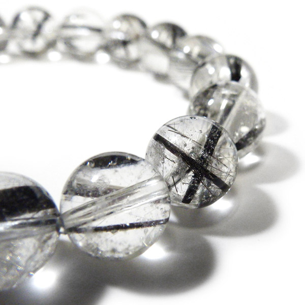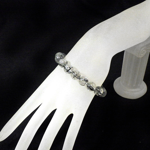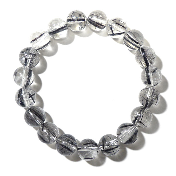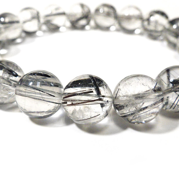 ブラックルチルクォーツ(ブラックトルマリンインクォーツ) ブレスレット ブラジル産 10.5mm玉 内周17cm