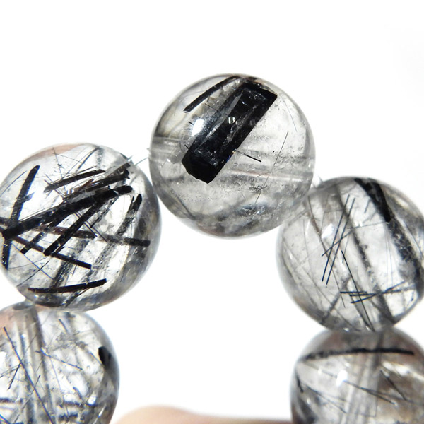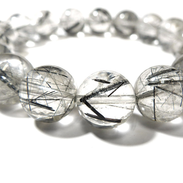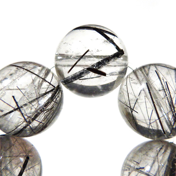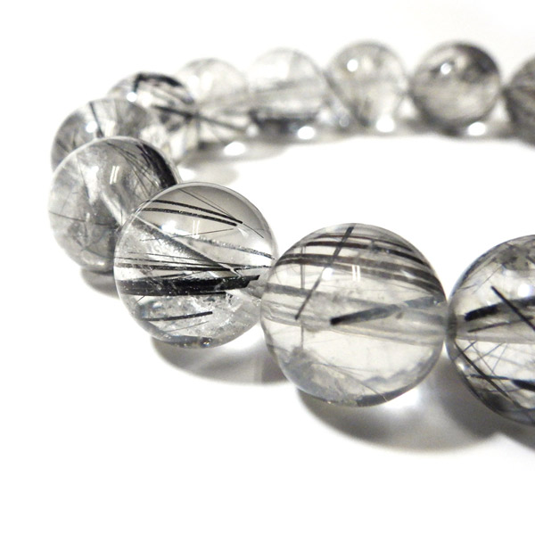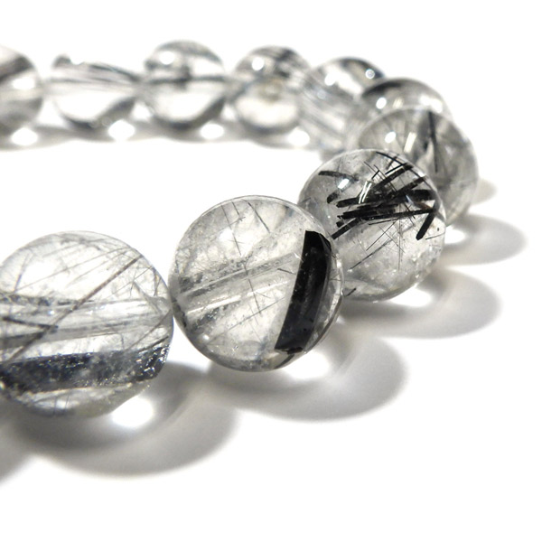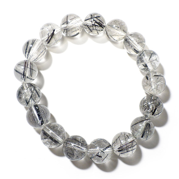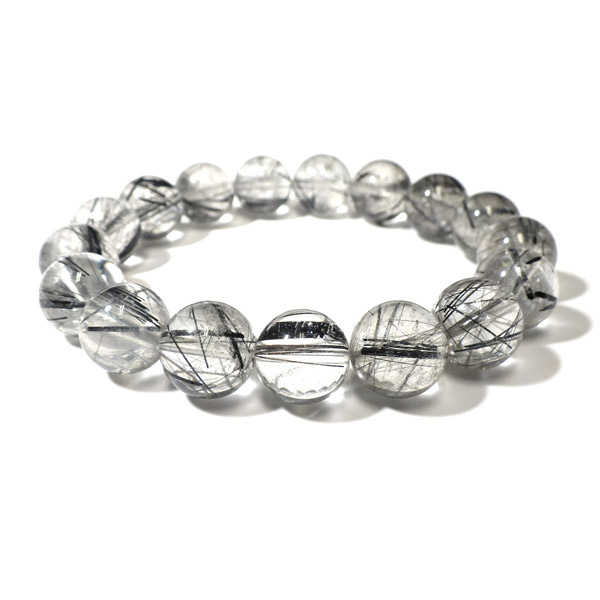ブラックルチルクォーツ(ブラックトルマリンインクォーツ) ブレスレット ブラジル産 12mm玉 内周17.5cm
