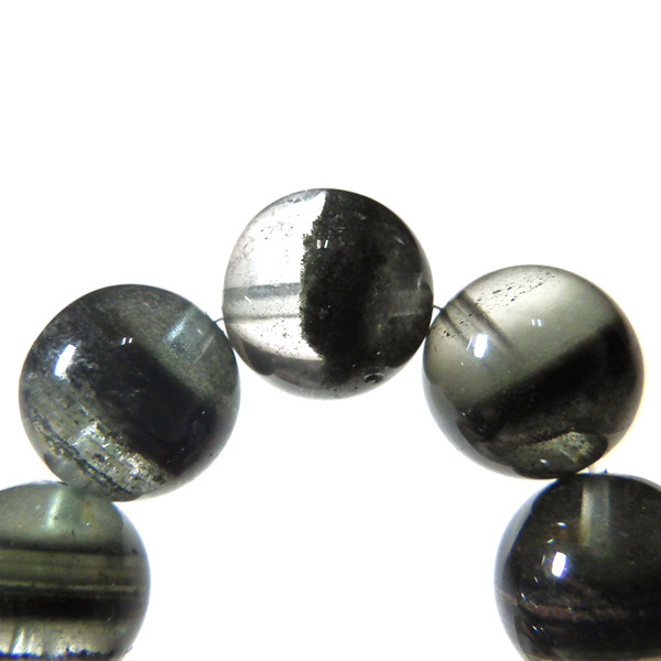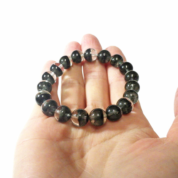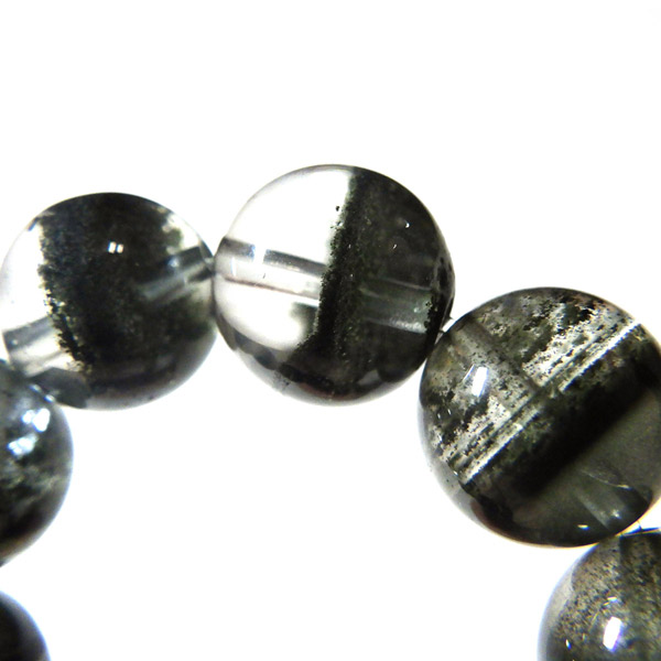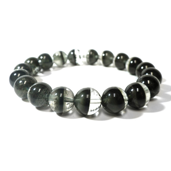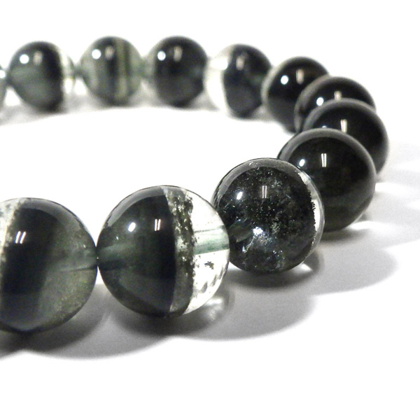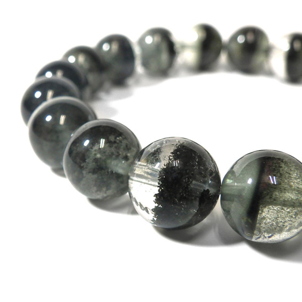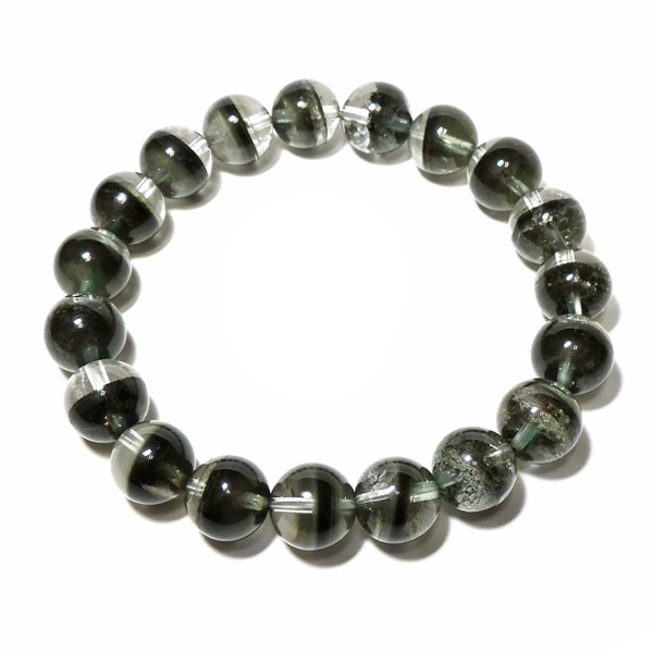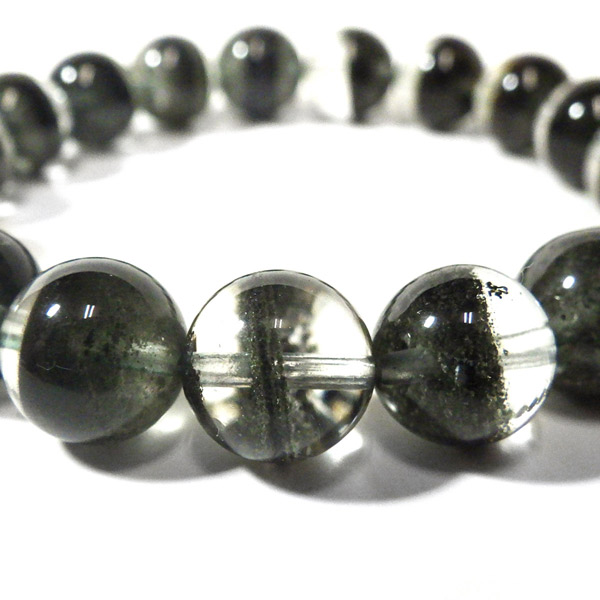 ブラジル産グリーンガーデンクォーツのブレスレットです。グリーンガーデンクォーツは、水晶の中に緑色の鉱物(クローライト(緑泥石)やファントムなど)が内包された美しい天然石です。その幻想的な模様はまるで小さな庭園のように見え、自然のエネルギーを感じさせてくれます。透明度が高く、一粒一粒とても見応えがある高品質な一点です。