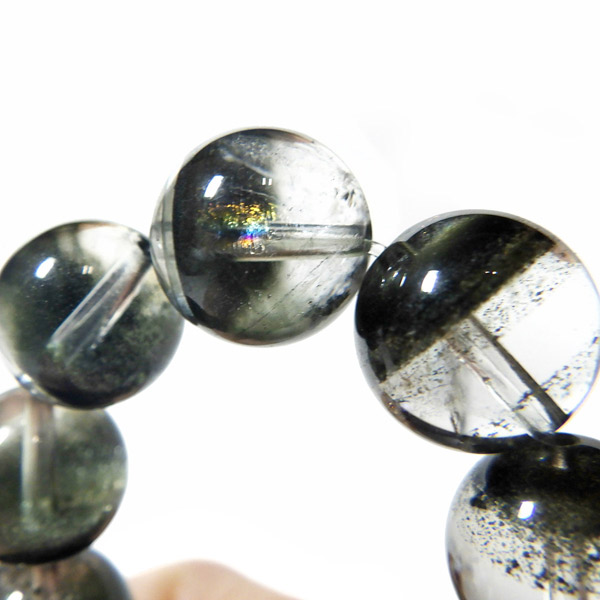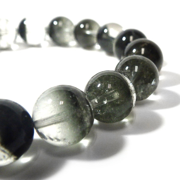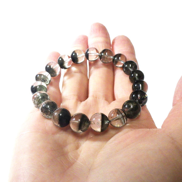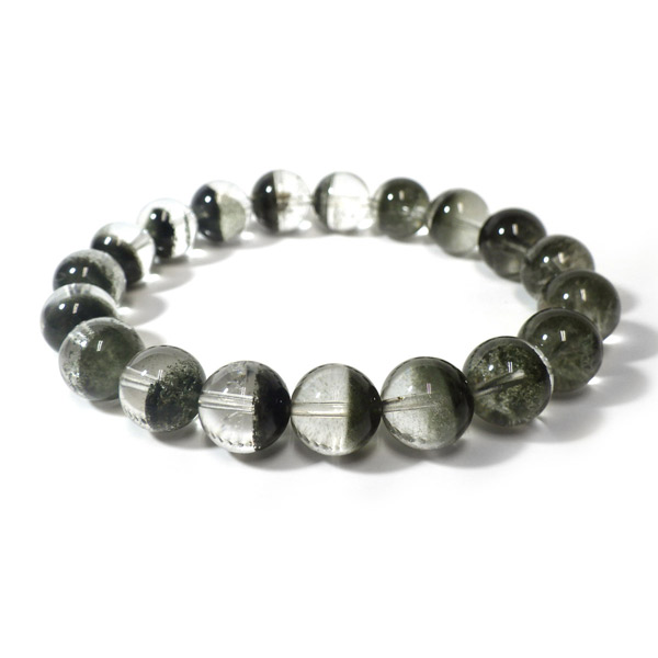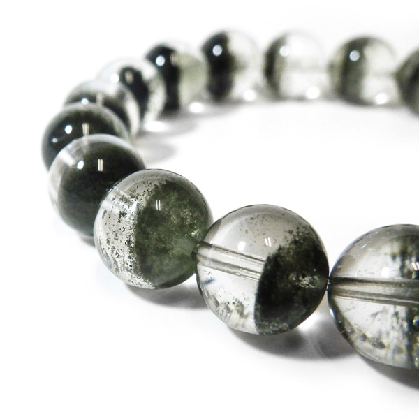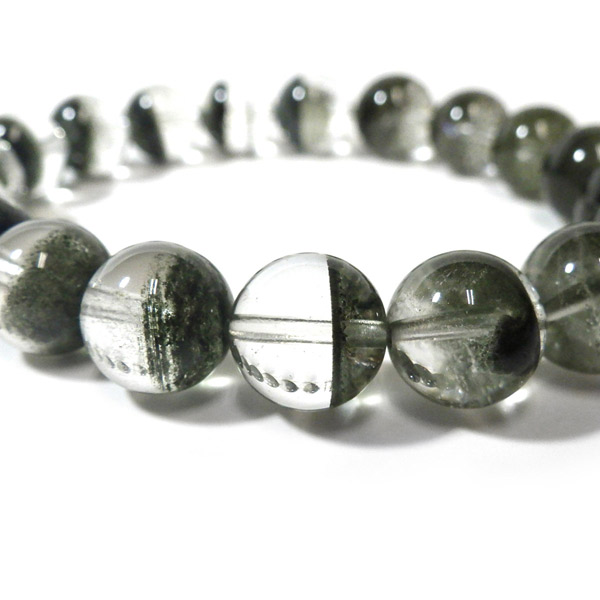 ブラジル産グリーンガーデンクォーツのブレスレットです。グリーンガーデンクォーツは、水晶の中に緑色の鉱物(クローライト(緑泥石)やファントムなど)が内包された美しい天然石です。その幻想的な模様はまるで小さな庭園のように見え、自然のエネルギーを感じさせてくれます。透明度が高く、一粒一粒とても見応えがある高品質な一点です。