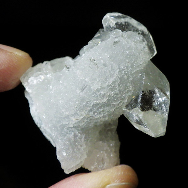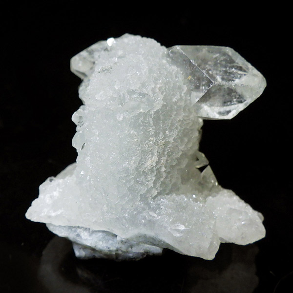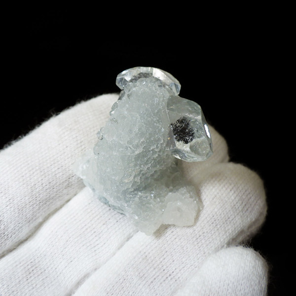 インド産のアポフィライト原石です。アポフィライトは、その透明感溢れる輝きと独特のピラミッド型の結晶構造が特徴の天然石です。高い波動と癒しの力を持つとされ、透明度が高い結晶の輝きは眺めるだけでピュアな気持ちにさせてくれます。