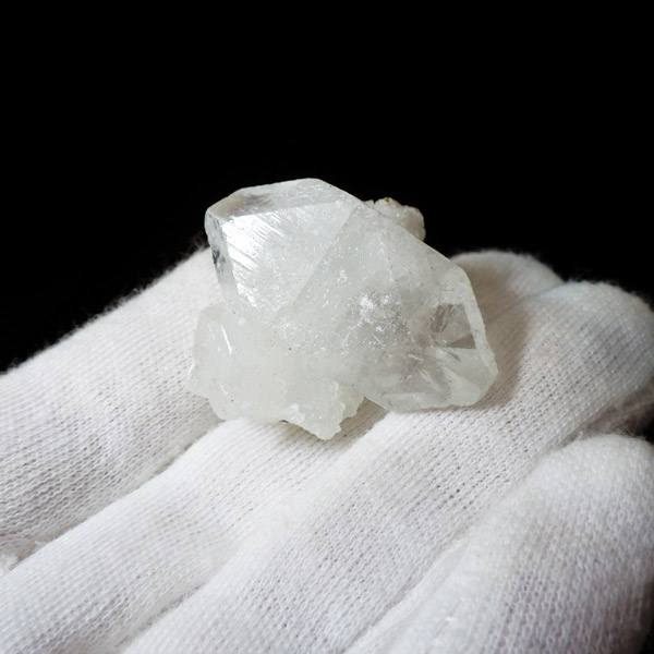 インド産のアポフィライト原石です。アポフィライトは、その透明感溢れる輝きと独特のピラミッド型の結晶構造が特徴の天然石です。高い波動と癒しの力を持つとされ、透明度が高い結晶の輝きは眺めるだけでピュアな気持ちにさせてくれます。