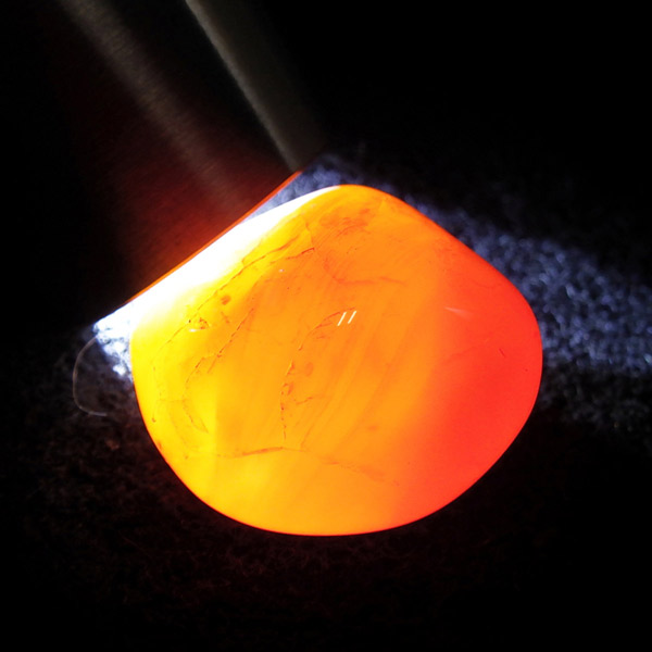 カルセドニーの中で赤みが強く、オレンジ色のものをカーネリアンと呼びます。古代より護符として歴史に刻まれてきた石ですが、現在は達成したい目標やチャレンジする気持ちを高めてくれると言われ、いざという場面で力を発揮してくれるといわれています。例えば、試験などのお守りとして、勝負の時に手助けしてくれるといわれています。