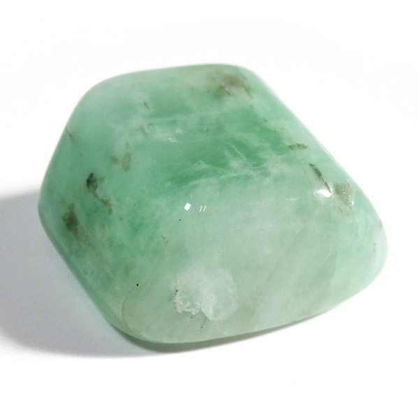 ブラジル産、天然エメラルドのタンブルです。世界三大宝石のひとつとして名高いエメラルドですが、宝石としてはコロンビア産が有名です。 今回ご用意したエメラルドは、ブラジル産のものです。コロンビア産の明るく爽やかなライトグリーンと比較して、ブラジル産のエメラルドは主張の強いグリーンが特徴といえます。グリーンのエメラルドはベリル系鉱物の中でも産出量が極端に少ない鉱物といわれています。