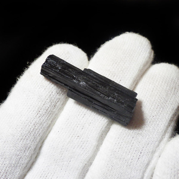 ブラジル産のブラックトルマリン原石です。トルマリンの結晶は柱状で縦に伸びる条線が特徴的です。断面は六角形ですが、三面のみ大きく発達していて三角形に近いものも多く見られます。結晶の表面はとてもツヤツヤと美しい光沢を放ち魅力的です。