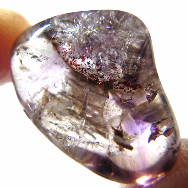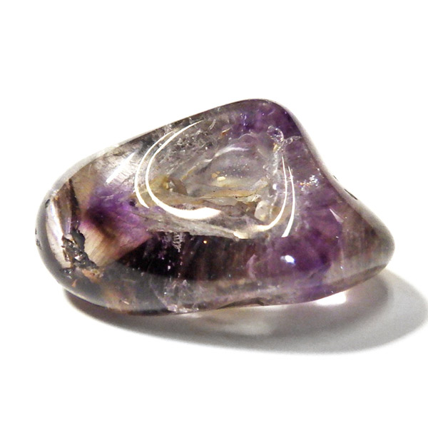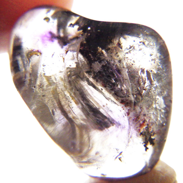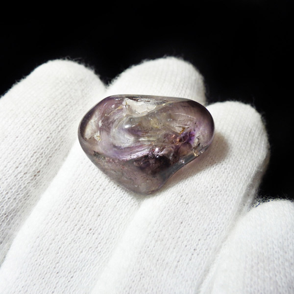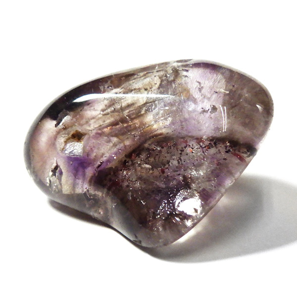 ナミビアのブランドバーグに産するアメジスト、通称ブランドバーグアメジスト、タンブルです。 透明なクォーツ内に煙のようにふわっと漂った美しいクリアなパープルのアメジストと黒いスモーキークォーツが見られます。透明度が高く、内包物がよく見えます。光によって輝く姿がこの産地特有のものでとてもきれいで癒されます。