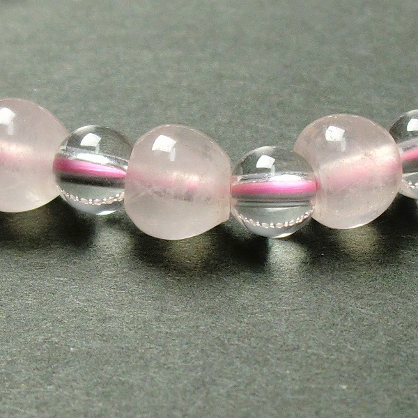 内周:約17cm ローズクォーツ7mm×15玉、水晶6mm×15玉