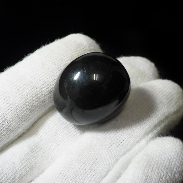 メキシコ産のオブシディアン、タンブルです。オブシディアンは和名で黒曜石。火山の噴火によって生じる天然のガラスで、急速に冷却された溶岩が結晶化せずに固まったものです。古代から世界各地で使われてきた道具のひとつで矢じりやナイフを作ったり、狩猟や戦闘、儀式など身近に使われていた天然石です。タンブル加工されていると、持ちやすく手触りも滑らかで、お守りとして持ち歩くのにもぴったりです。