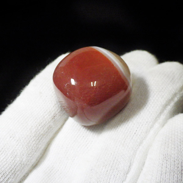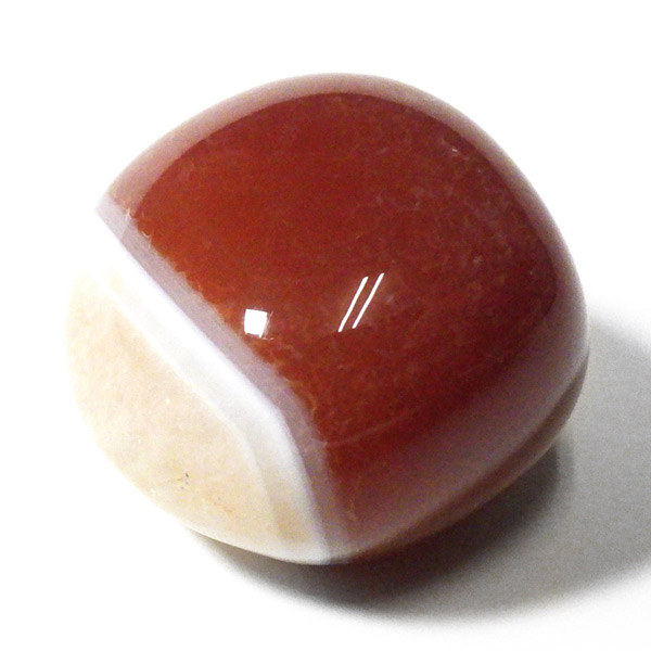 レッドアゲートは丸く研磨すると縞模様が眼のように浮かびあがるという意味合いから、「赤天眼石」と呼ばれることもあります。サードオニキスのこの特徴的な縞模様は、天眼石と同じく人や物事を見極める意味合いもあります。また、魔除けとして、悪意や嫉妬など、他人から悪意をもたれたときにも力を発揮してくれるといわれています。更に、人間関係全般に幸運をもたらし、恋人や夫婦などパートナーシップを安定させ、よい友情を引き寄せる効果があるといわれています。