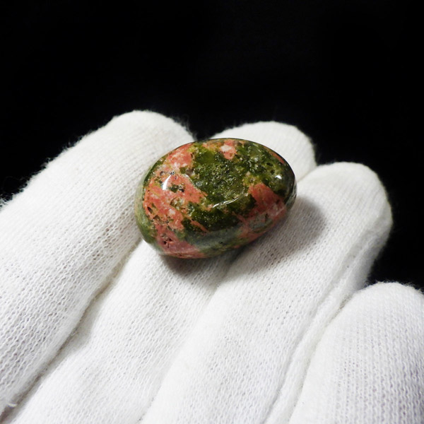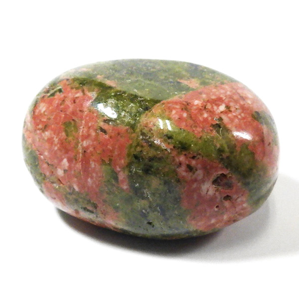エピドート(緑簾石)、クローライト(緑泥石)、フェルドスパー(長石)、クォーツ(石英)の混合石で、アメリカのノースカロライナ州のユナカ山地が原産地で、地名に因んで名付けられました。変質して出来た火成岩で、緑色が強いもの、ピンクが多めに入ったものなど個体差があり、その独特な色合いと模様がおもしろいです。