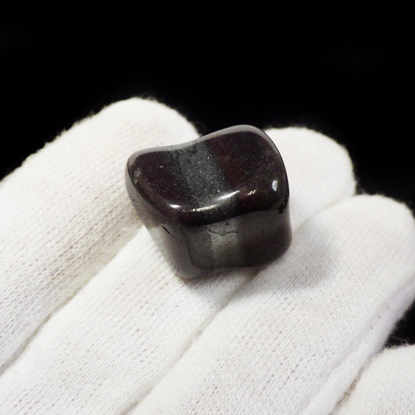 ブラジルの縞状鉄鉱層から産出するアンセストラライトのタンブルです。アンセストラライトはレッドジャスパーとヘマタイトからなる一部地域から採れる石のこと。レッドジャスパーの赤は元々ヘマタイト(赤鉄鉱)によるものです。粒状鉄鉱層からスペキュラーヘマタイトのようにキラキラとしたヘマタイトが産出します。27億年程前の地層の石ということでアンセストラライト(祖先石)という愛称でも呼ばれております。クリムゾンレッドとシルバーの縞模様が面白く、キラキラとしたヘマタイトも魅力的です。