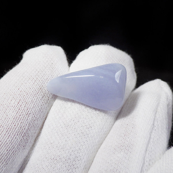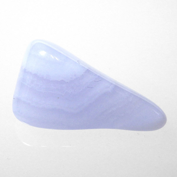 南アフリカ共和国産のブルーレースアゲート、タンブルです。ブルーレースアゲートの和名は「空色縞瑪瑙」。 淡い水色や白色が層状に重なって、まるでレースのように見えることからこの名が付けられました。 近年、縞模様がはっきり見られるブルーレースアゲートの原石が激減しており、今では質の良いものは入手が困難になっています。