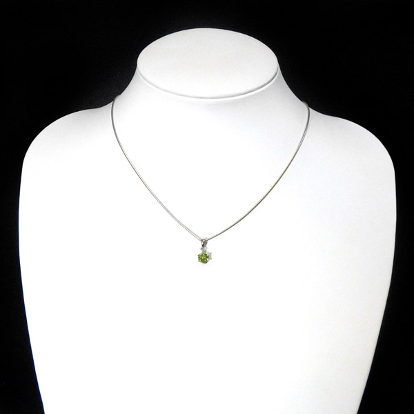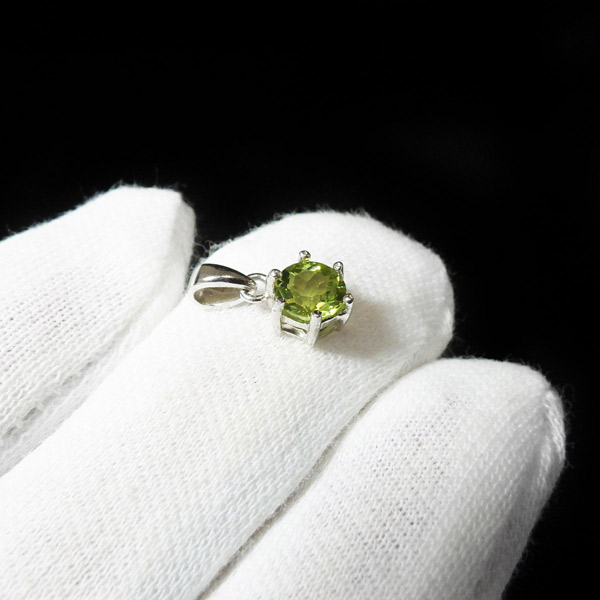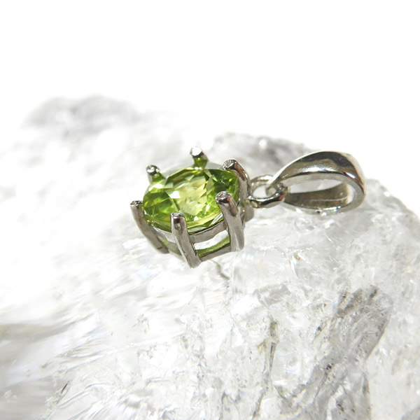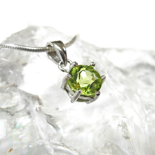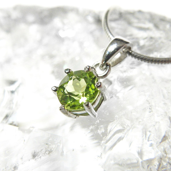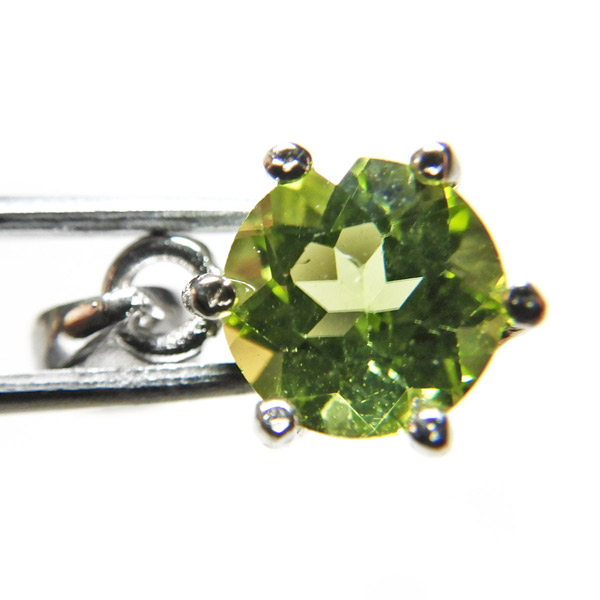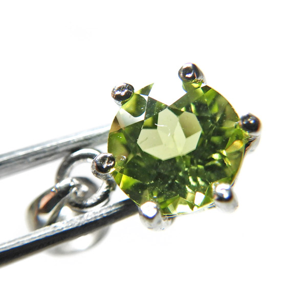 アフガニスタン産のペリドットのファセットカットペンダントトップです。大変透明度が高く、濃い色合いのペリドットの結晶を使用しております。爽やかなきらめきと色合いがとっても素敵なペリドットです。胸元のアクセントに、上品で洗練された印象を与えてくれます。
