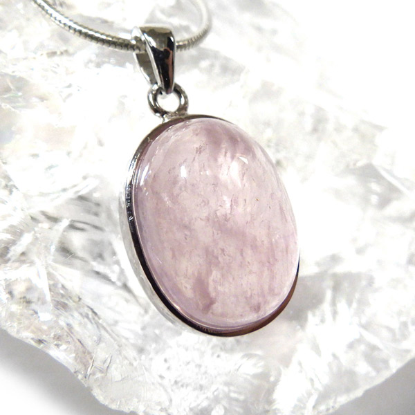 透明度が抜群で、柔らかなピンクが魅力的なモルガナイトのペンダントトップです。モルガナイトは、「アクアマリン」や「エメラルド」と同じ「ベリル」グループに属する鉱物。