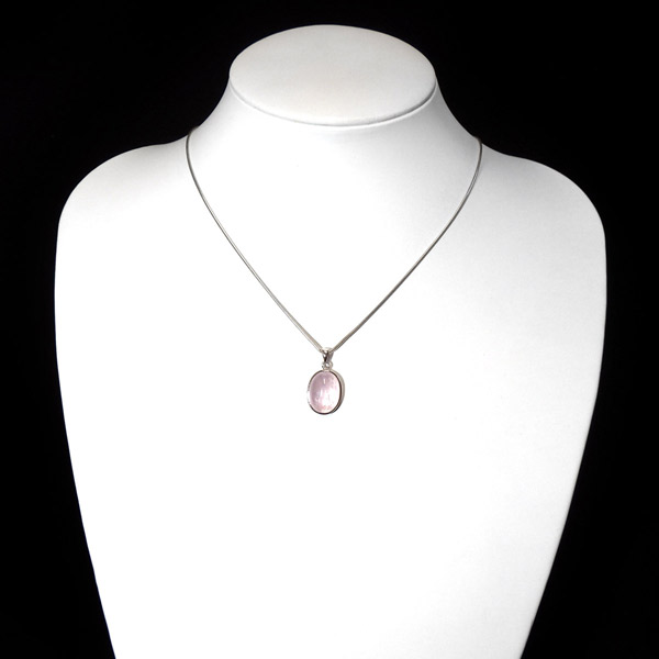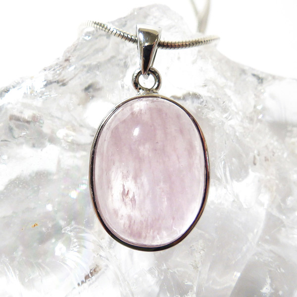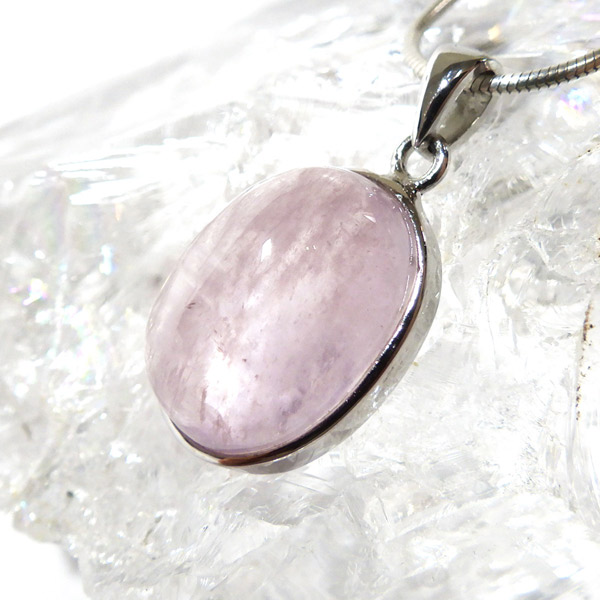 透明度が抜群で、柔らかなピンクが魅力的なモルガナイトのペンダントトップです。モルガナイトは、「アクアマリン」や「エメラルド」と同じ「ベリル」グループに属する鉱物。 1911年に「モルガナイト」という名前が付けられるまでは、「ピンクベリル」や「ピンクアクアマリン」とも呼ばれていました。 カボションカットで煌めくピンクのモルガナイトを使用しており、見るたびに心を穏やかにしてくれます。 特に女性にとっては、心が躍るようなワクワク感をもたらし、身に着けることで自然と自信を感じさせてくれるアイテムです。