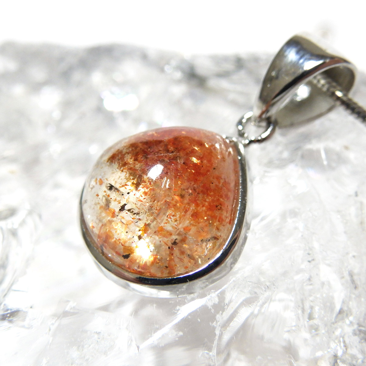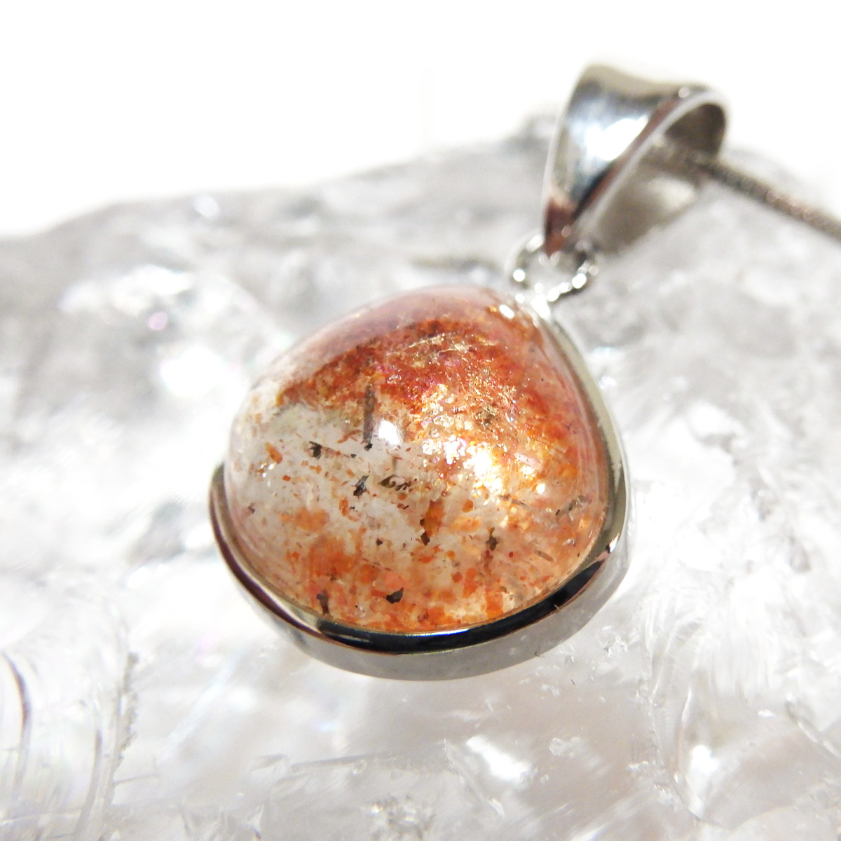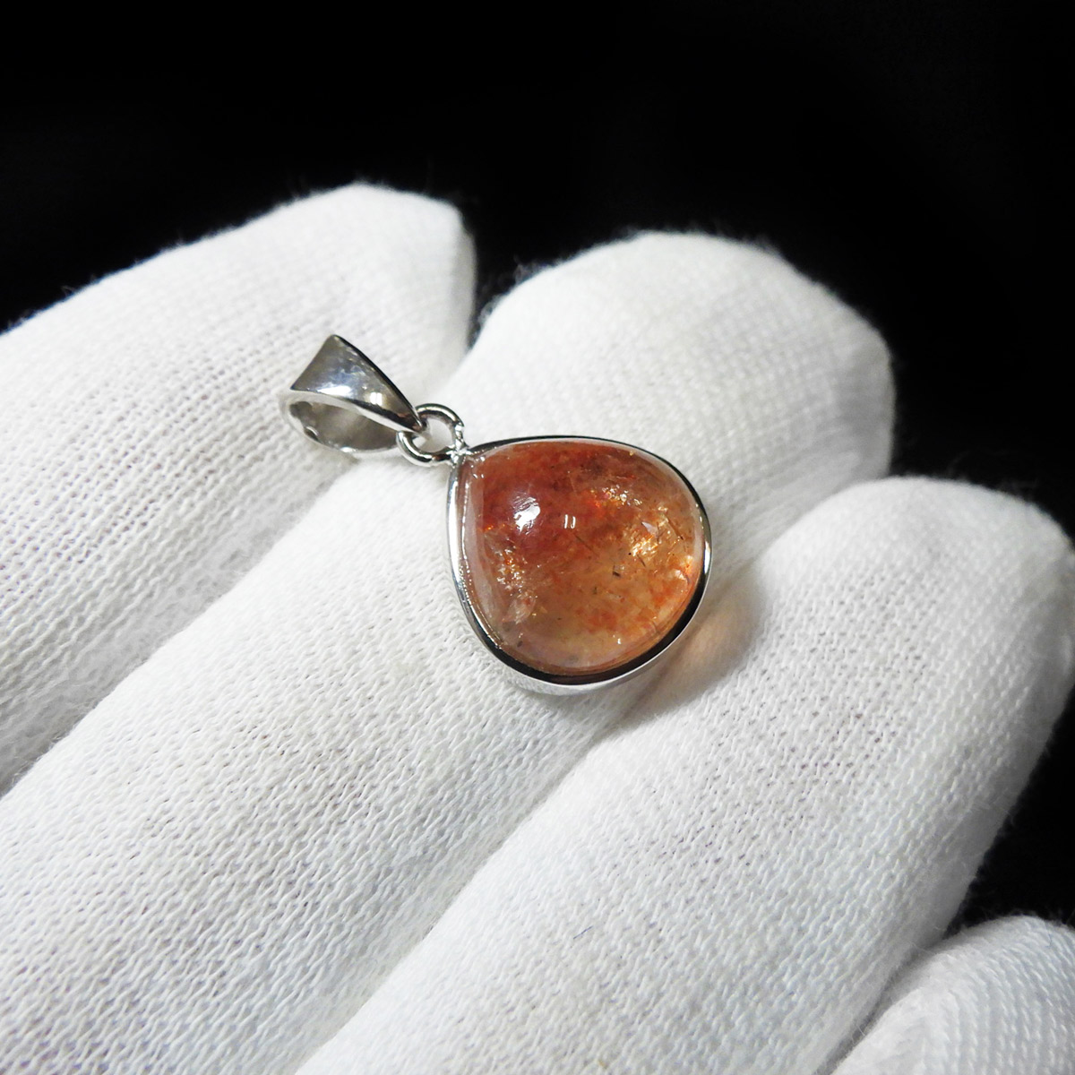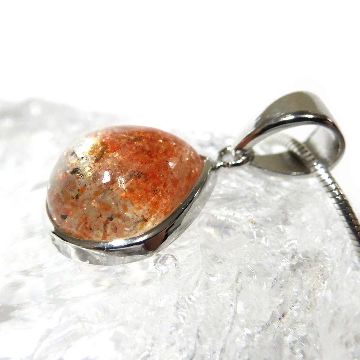 インド産のサンストーン、ペンダントトップです。 灼熱の太陽を思わせるような、鮮やかなオレンジ色が印象的なサンストーン。