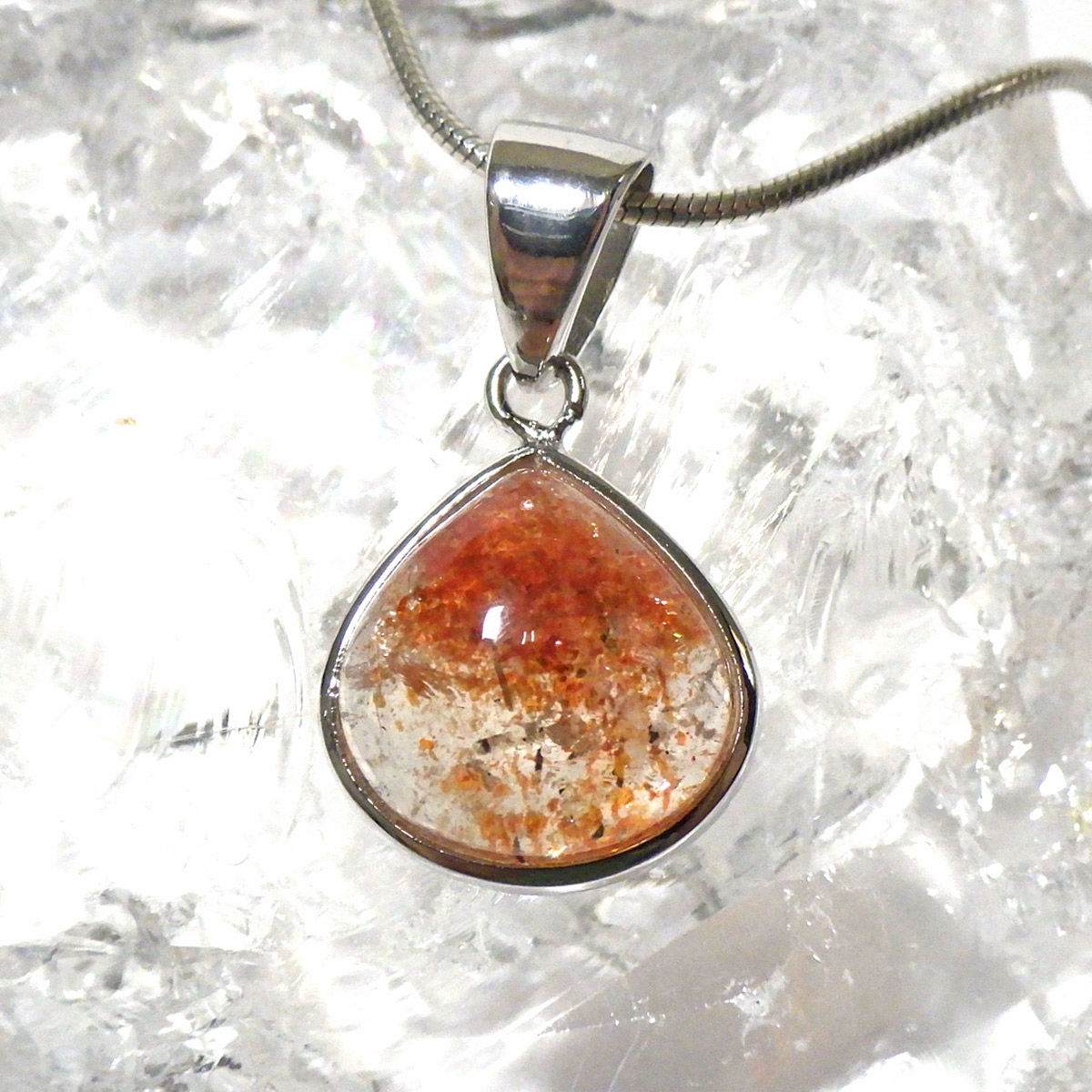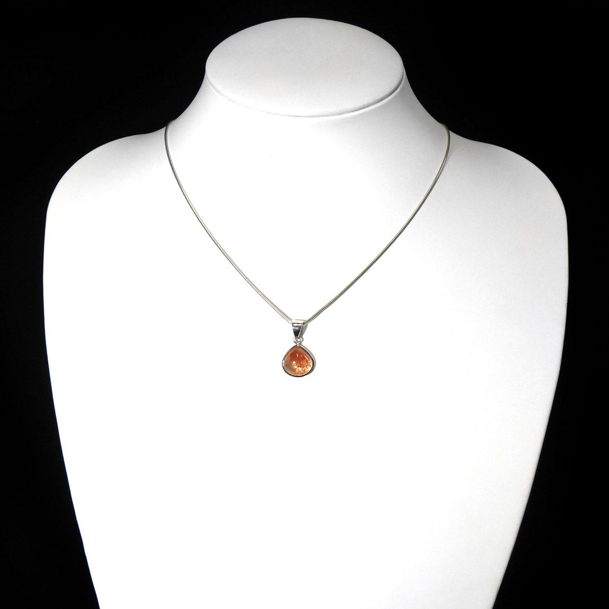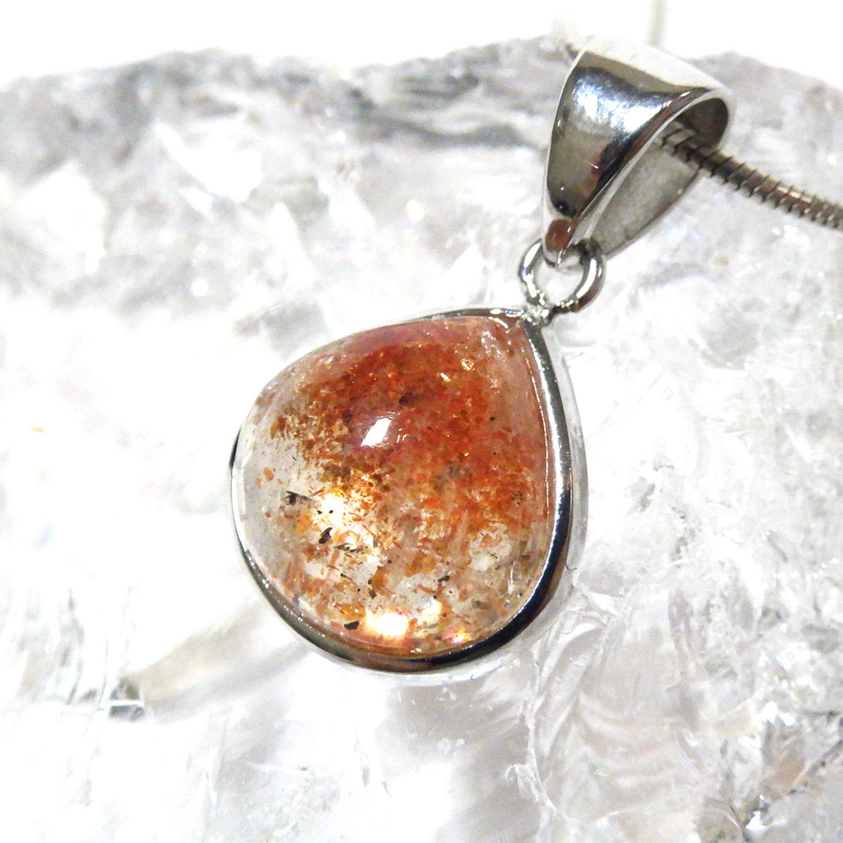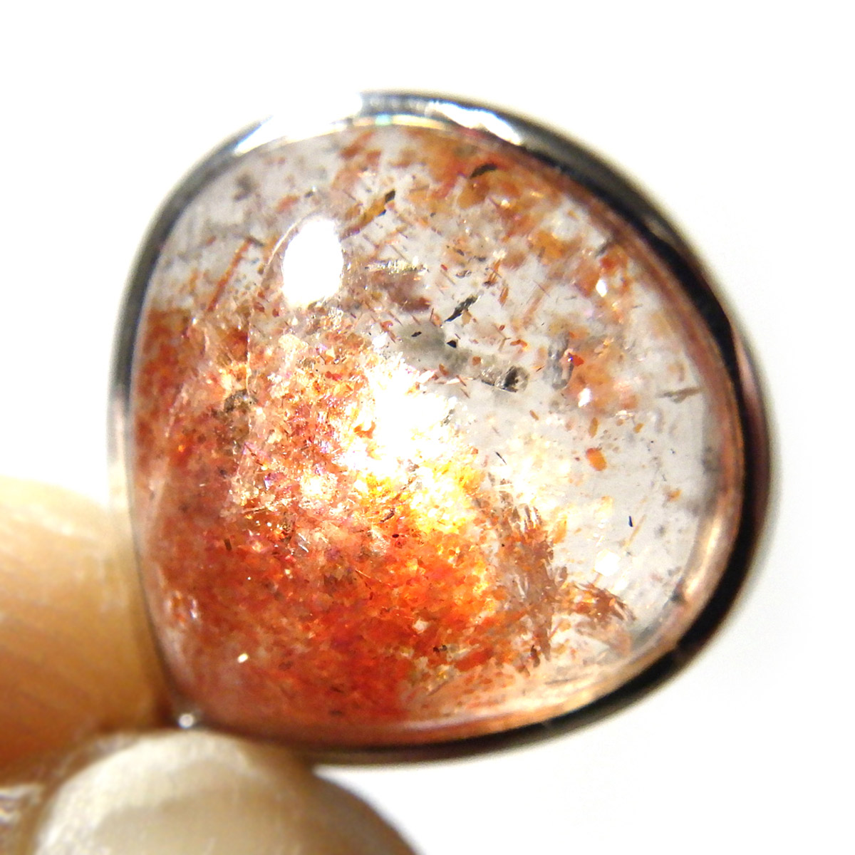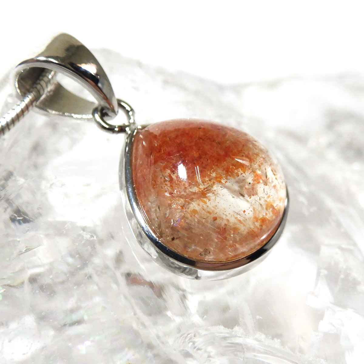 インド産のサンストーン、ペンダントトップです。 灼熱の太陽を思わせるような、鮮やかなオレンジ色が印象的なサンストーン。