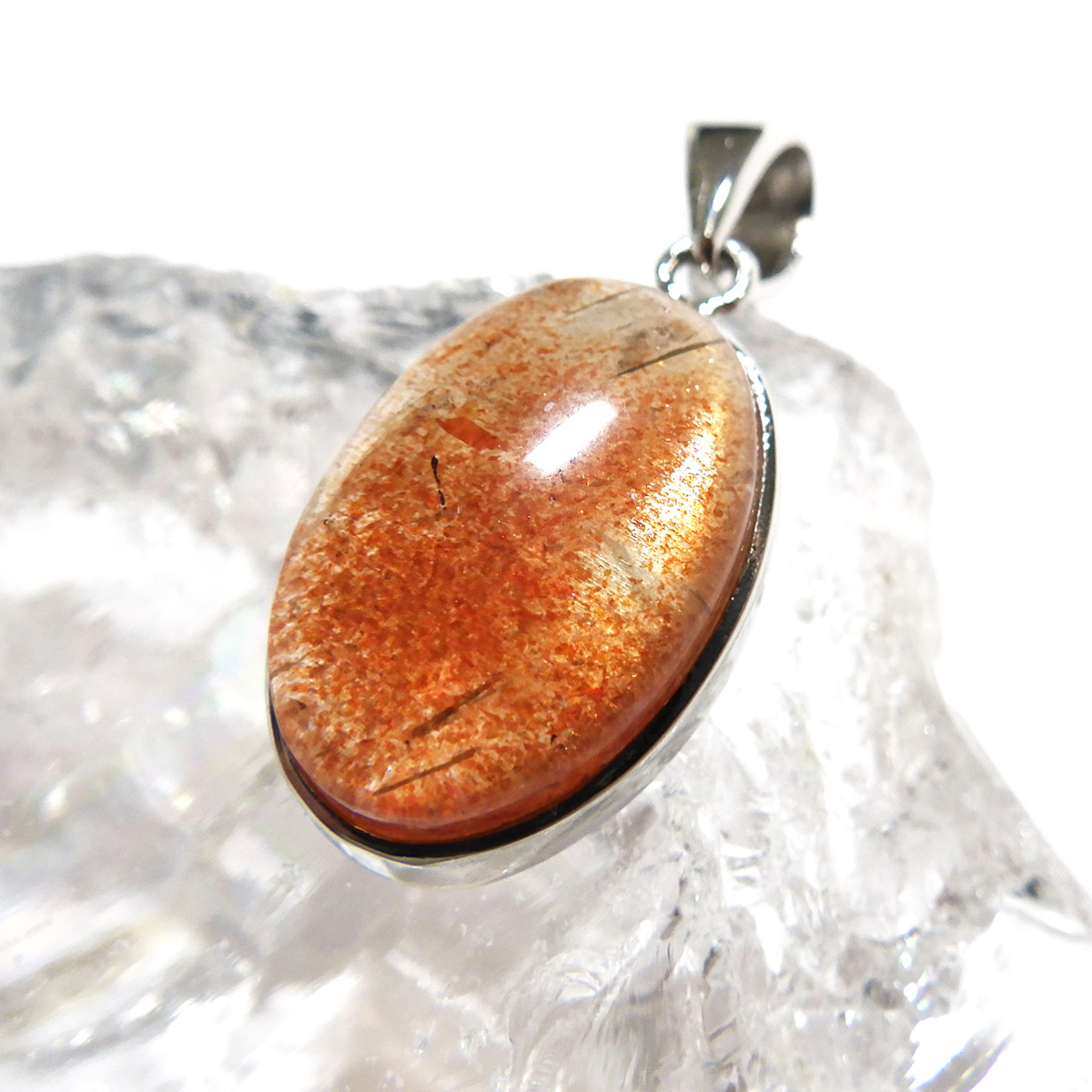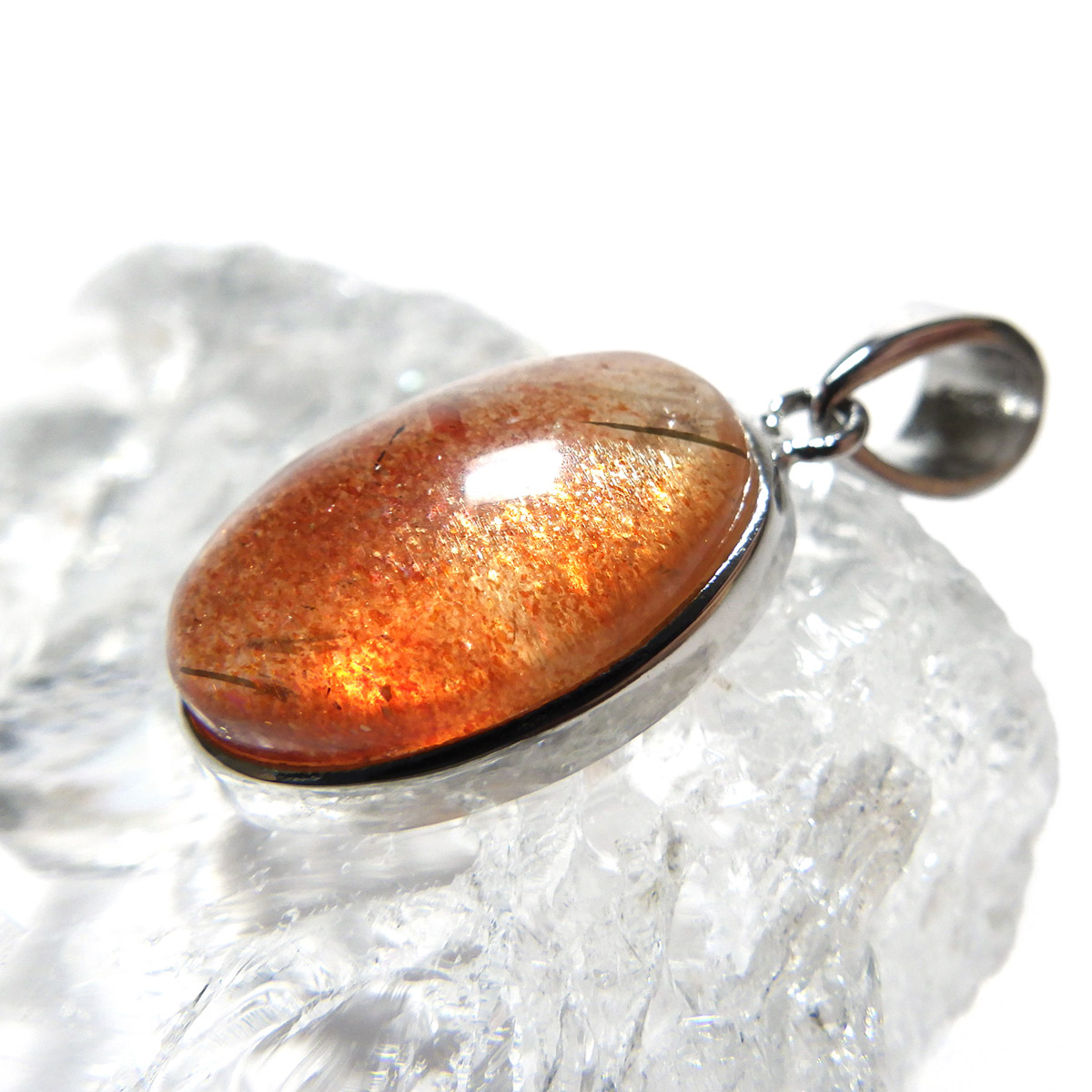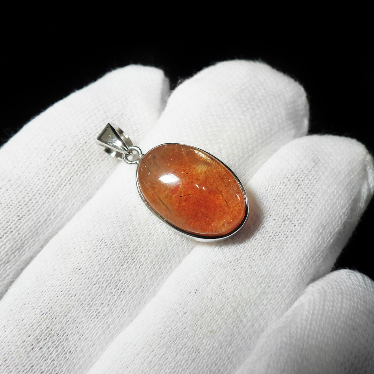 インド産のサンストーン、ペンダントトップです。 灼熱の太陽を思わせるような、鮮やかなオレンジ色が印象的なサンストーン。
