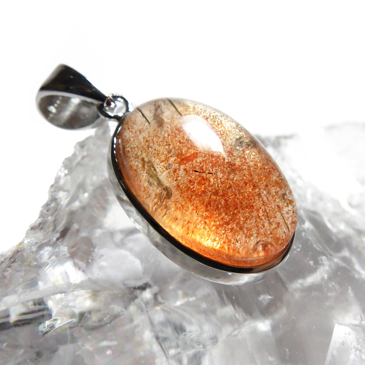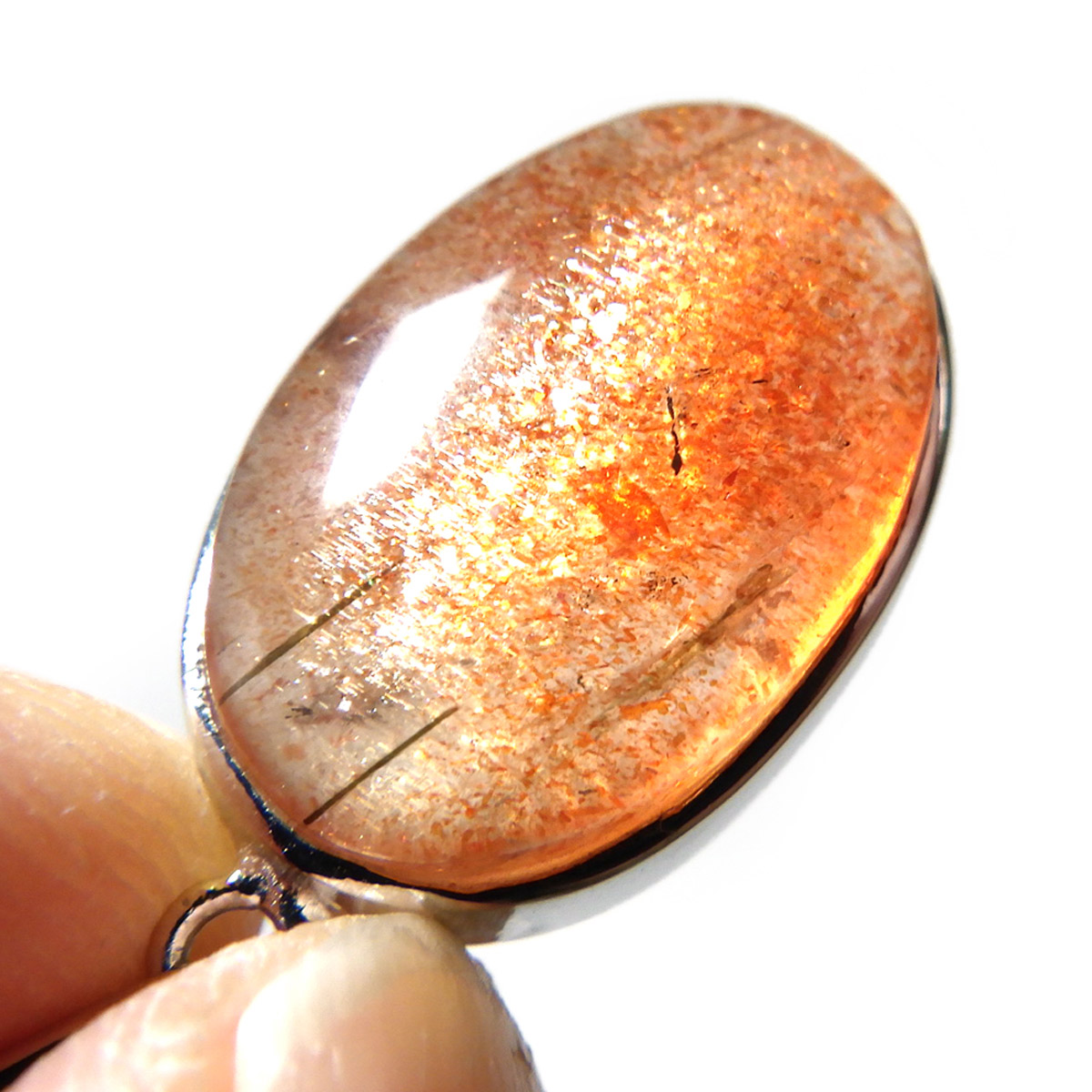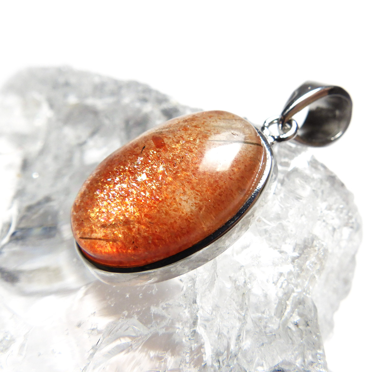 インド産のサンストーン、ペンダントトップです。 灼熱の太陽を思わせるような、鮮やかなオレンジ色が印象的なサンストーン。