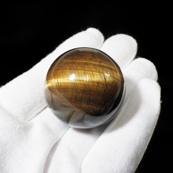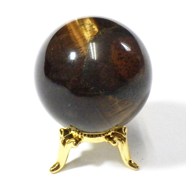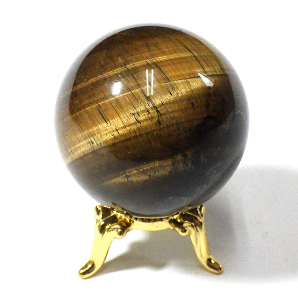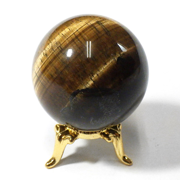 南アフリカ産のタイガーアイ球です。タイガーアイは、キャッツアイ効果で茶色から金色の縞模様が浮かび、輝きが虎の目を連想させる事からタイガーアイと呼ばれるようになりました。 一般的に金運といえばタイガーアイで、水晶やアメジストなどと同等の認知度があり、非常に人気がある石です。