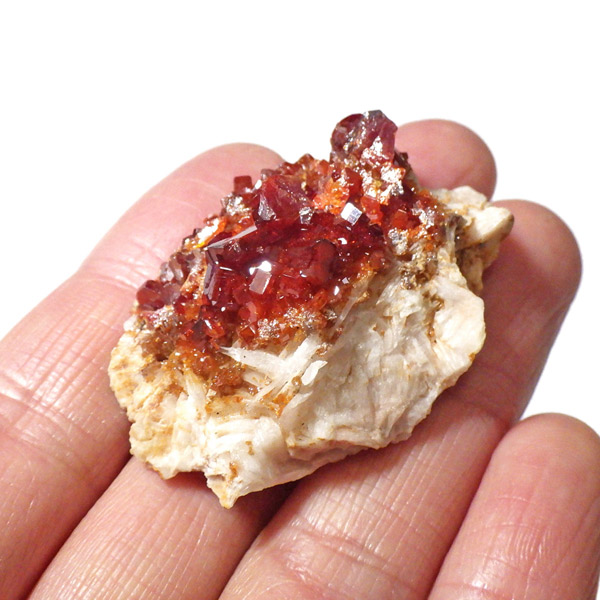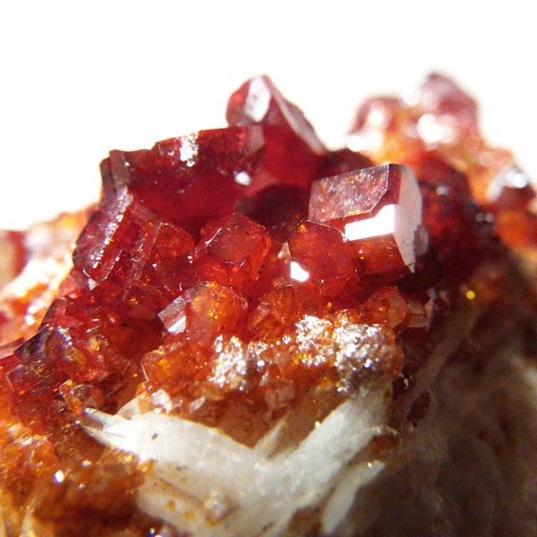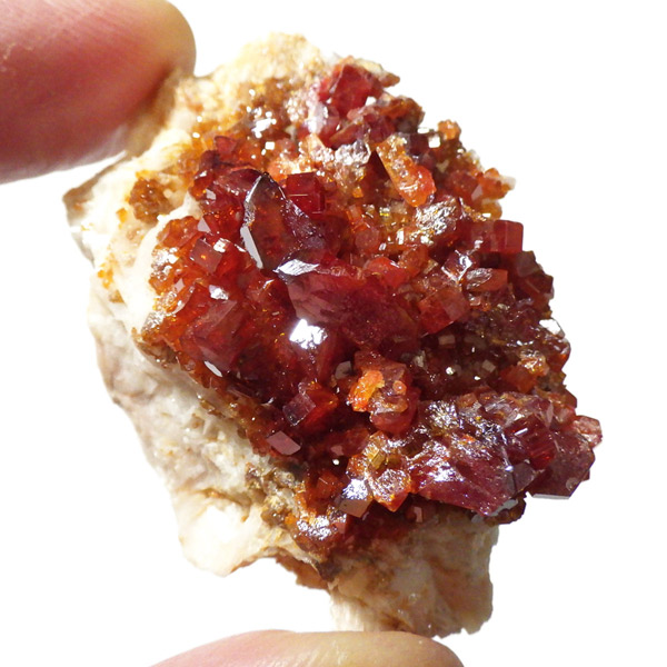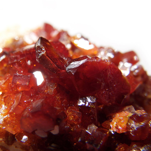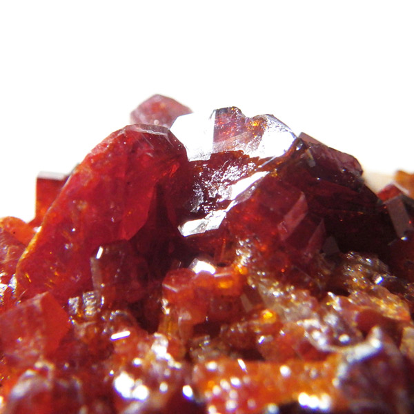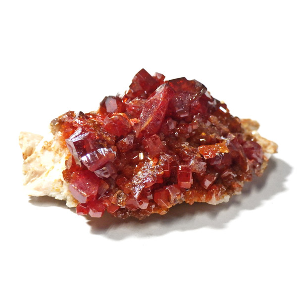 モロッコ産バナジナイト原石です。非常に高品質な結晶を有しています。バナジナイトの中でも赤に近いギラギラの朱色の結晶群です。美しい六角板状の結晶は、艶やかな表面から光を非常によく反射させ、キラキラと輝き大変魅力的です。