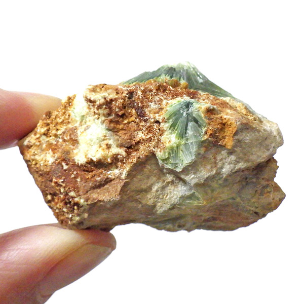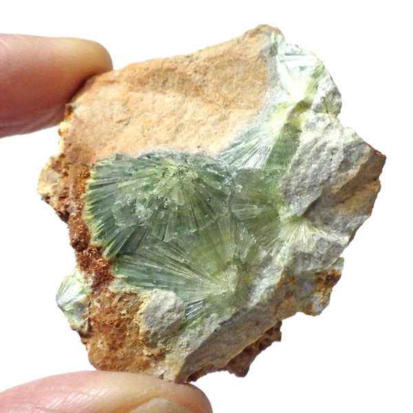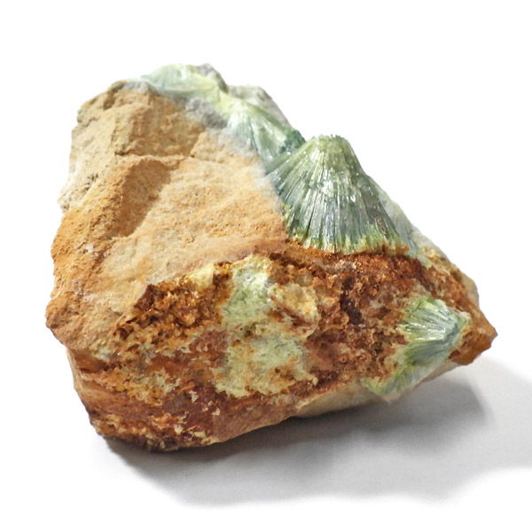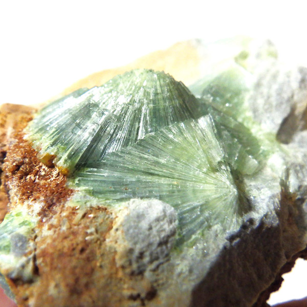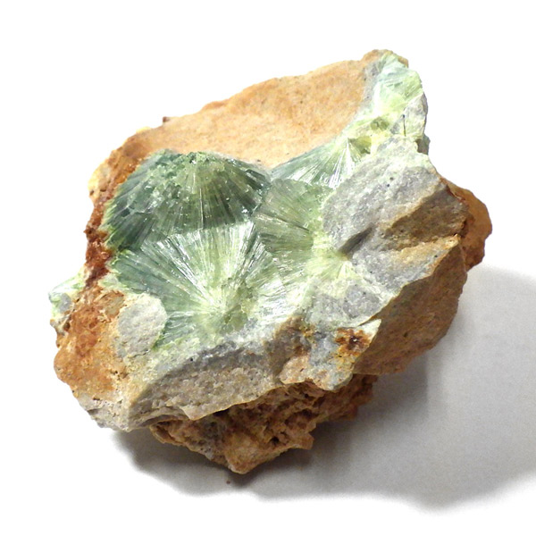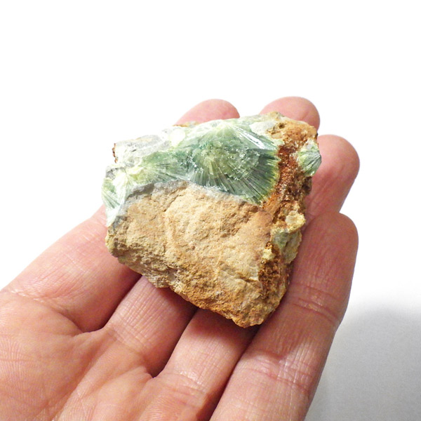 アメリカ・アーカンソー州産のワーべライト原石です。 美しい放射状の結晶形が確認でき、角度を変えて輝く結晶の光沢が美しいです。和名は銀星石、アルミニウムの含水燐酸塩鉱物です。グリーンの発色が良い、大変綺麗な原石になります。