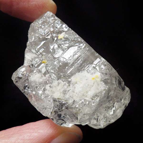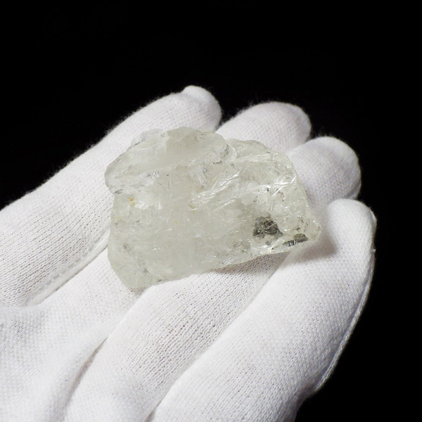 ブラジル産のトパーズ、原石です。 トパーズは様々な色を持つ鉱物であり、和名を「黄玉(おうぎょく)」というように、本来は「黄色からオレンジ色」のトパーズがスタンダードなカラーとなっています。 このトパーズは基本的にはクリアな透明色ですが、僅かに黄色味がかっております。側面の結晶形がはっきりとしておりませんが、縦に伸びる条線も僅かに見られます。