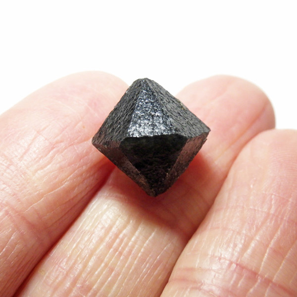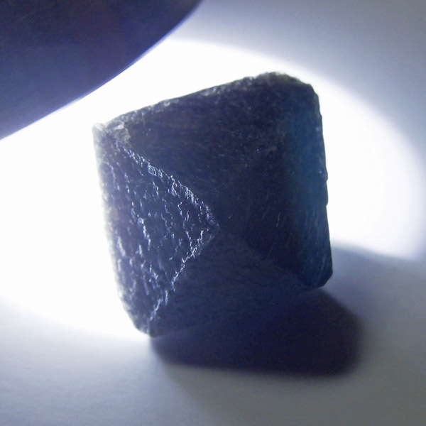 モリオン(黒水晶)がベータクォーツとして形成された極めて珍しい結晶標本。まるでフローライトのようですが六方晶系の12面体の結晶。通常のモリオンとは異なり、高温型水晶特有の擬等軸六方晶系を呈するため、学術的にも価値の高い一品。結晶面は鋭角的でシャープ、光にかざしてもほぼ透過性がない高品質なモリオンです。