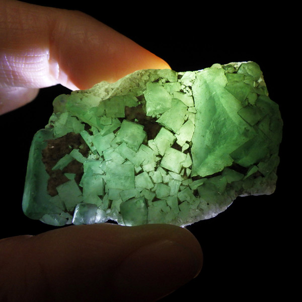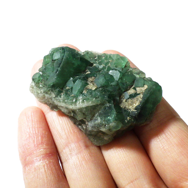 深みのある神秘的なグリーンが魅力的。ブラックライトを当てると、淡く幻想的に光る蛍光性を持っており、コレクションにもぴったり。深いグリーンの色彩を持っているので磨いてみるのも面白いかもしれません。掌に収まるお手頃サイズで、デスクや棚にも気軽に飾っていただけます。