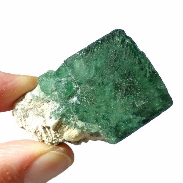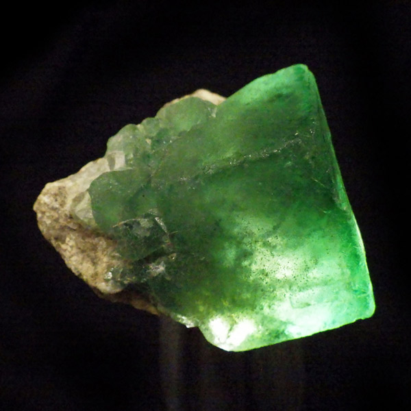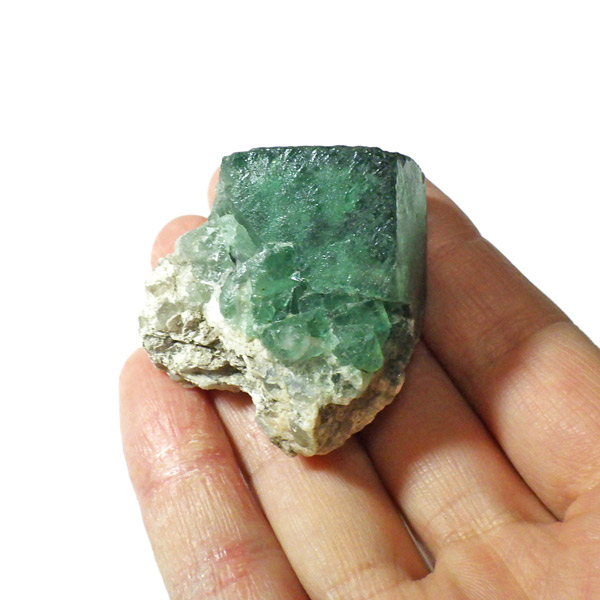 深みのある神秘的なグリーンが魅力的。ブラックライトを当てると、淡く幻想的に光る蛍光性を持っており、コレクションにもぴったり。深いグリーンの色彩を持っているので磨いてみるのも面白いかもしれません。掌に収まるお手頃サイズで、デスクや棚にも気軽に飾っていただけます。