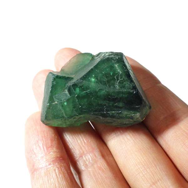 深みのある神秘的なグリーンが魅力的。ブラックライトを当てると、淡く幻想的に光る蛍光性を持っており、コレクションにもぴったり。深いグリーンの色彩を持っているので磨いてみるのも面白いかもしれません。掌に収まるお手頃サイズで、デスクや棚にも気軽に飾っていただけます。
