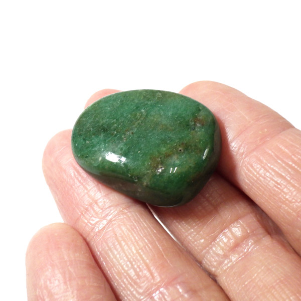タンザニア産のフックサイト、タンブルです。フックサイト、発音によりフクサイト、またはクロムマイカと呼ばれております。マイカ(雲母)グループの中のモスコバイト(白雲母)の変種で緑色になったものがフックサイトです。和名はクロム白雲母でクロムにより緑色に発色しております。