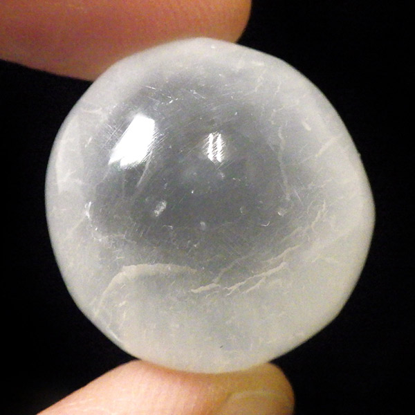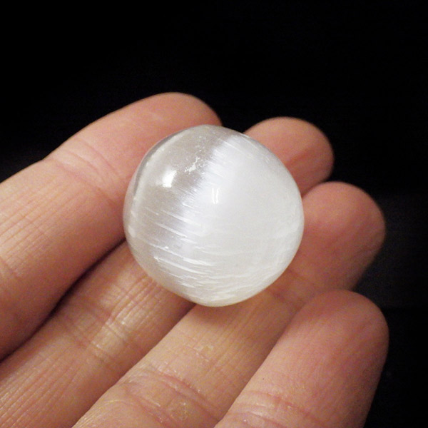 モロッコ産の艶が良いAAAセレナイトのタンブルです。 ジプサム(石膏)の透明度が高いものを、セレナイト(透石膏)といいます。大きく美しい結晶はかつて「聖母マリアのガラス」と呼ばれ、窓ガラスに利用されることもあったそうです。マットな質感が特徴的で、セレナイトのシルキーな光沢が幻想的です。 水分や油脂が苦手な石なので、取り扱いには注意が必要です。