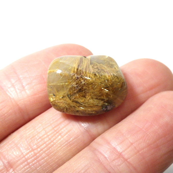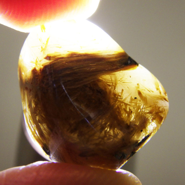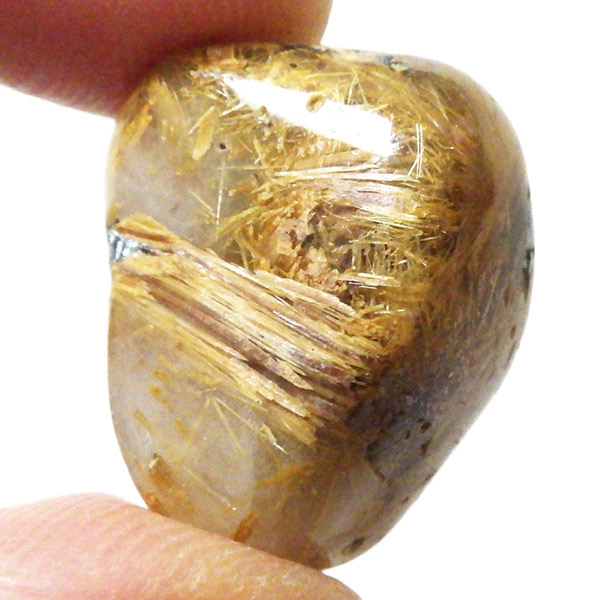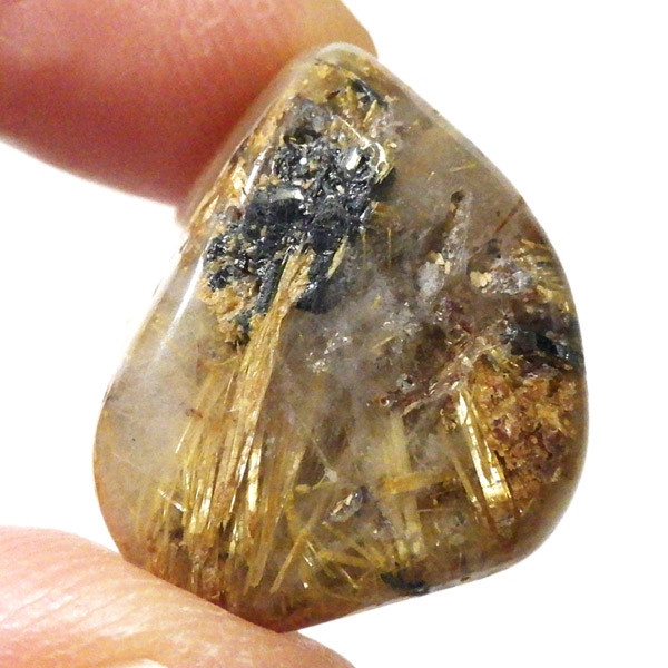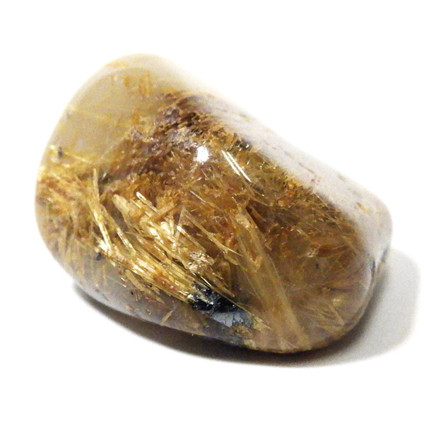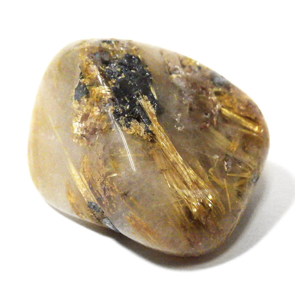 ブラジル産のルチルクォーツにヘマタイトが共生した、希少なタンブルです。