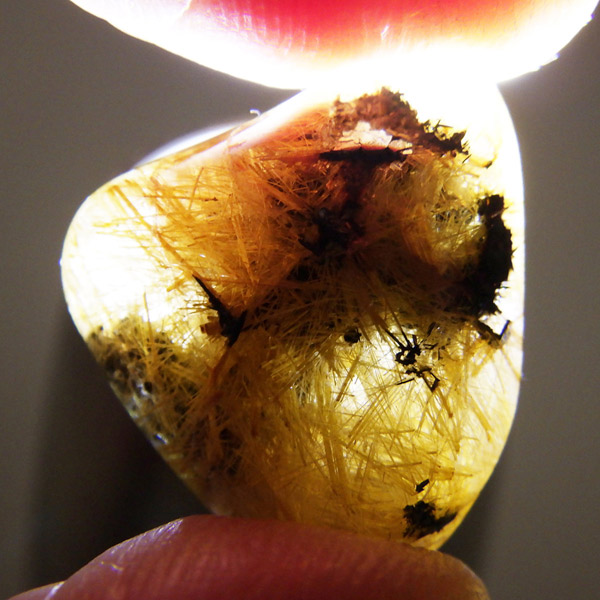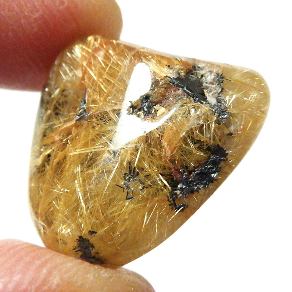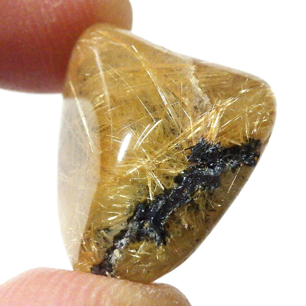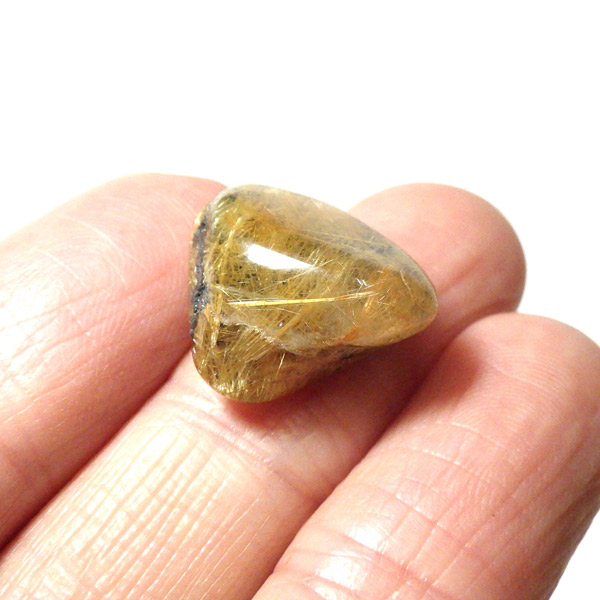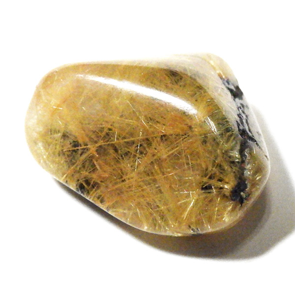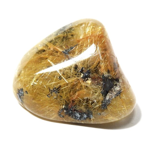 ブラジル産のルチルクォーツにヘマタイトが共生した、希少なタンブルです。
