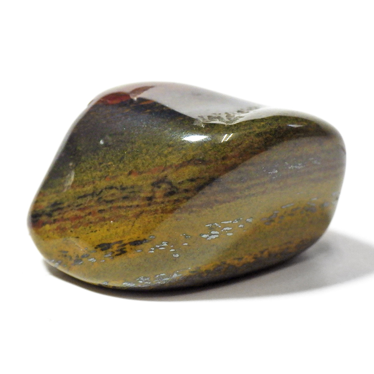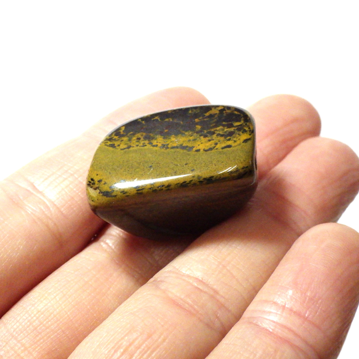 南アフリカ産のアイアンタイガーアイ、タンブルです。タイガーアイにヘマタイト、ジャスパー等が混合した石の事を、アイアンタイガーアイと呼びます。パワーストーンとしてのタイガーアイは、金運や仕事運などで大人気です。このアイアンタイガーアイは、ヘマタイトを内包しているため究極の勝負石のパワーを持っているとされています。