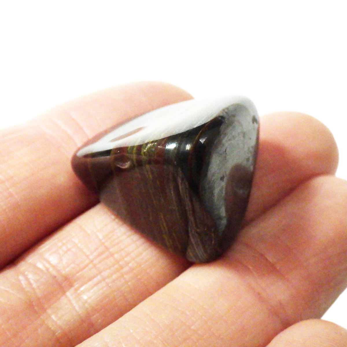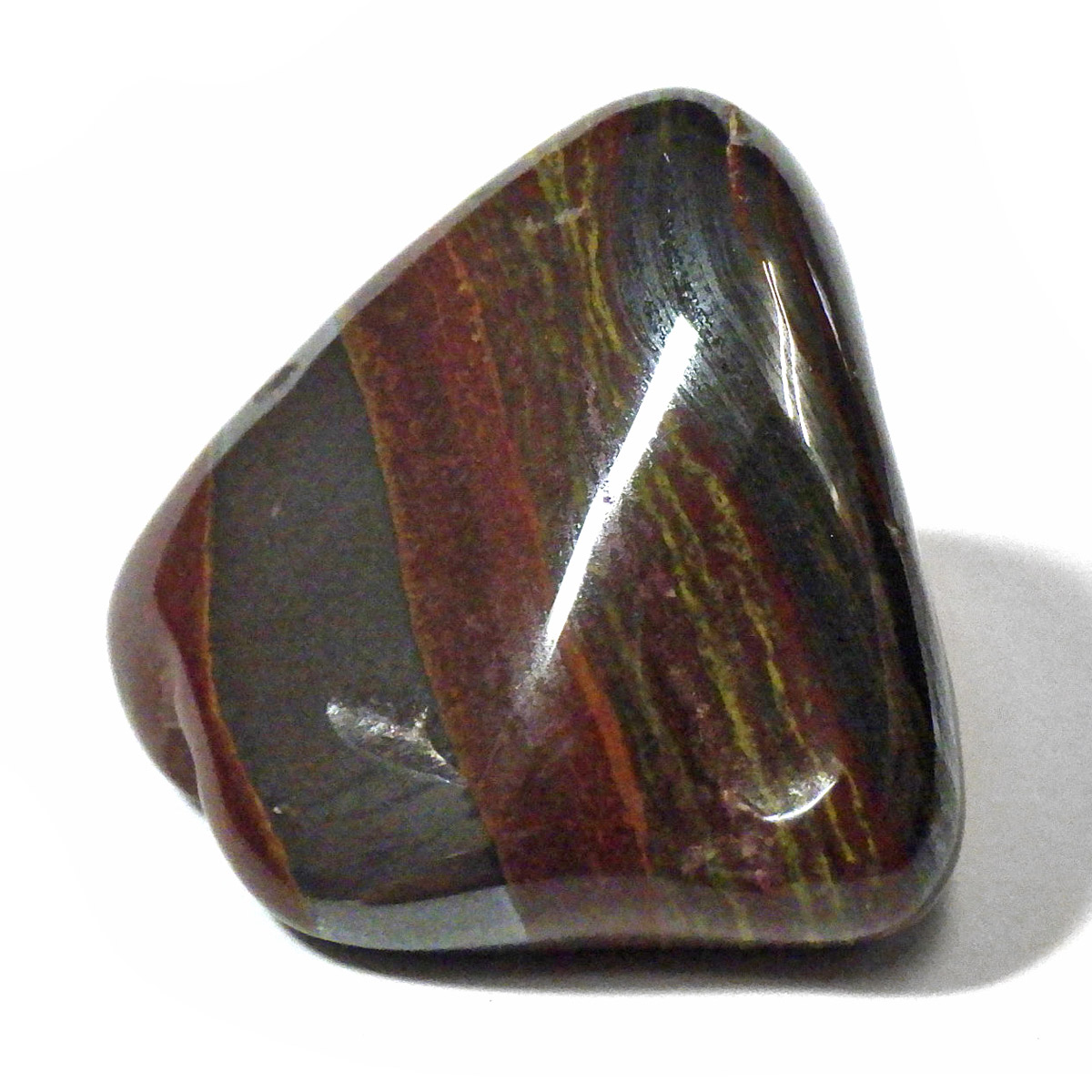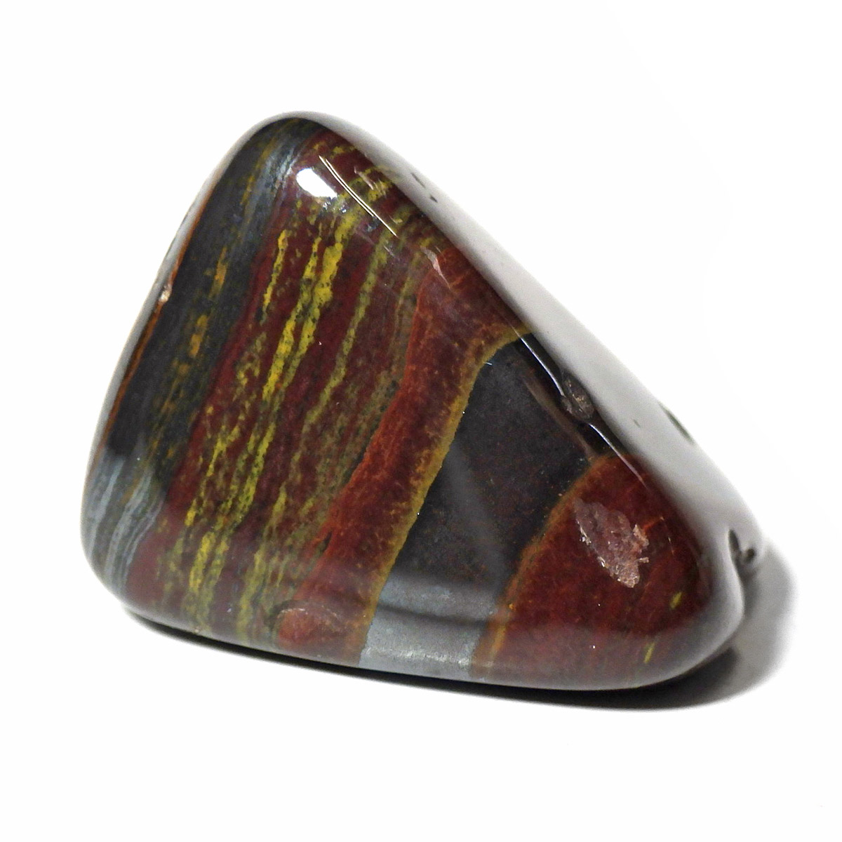 南アフリカ産のアイアンタイガーアイ、タンブルです。タイガーアイにヘマタイト、ジャスパー等が混合した石の事を、アイアンタイガーアイと呼びます。パワーストーンとしてのタイガーアイは、金運や仕事運などで大人気です。このアイアンタイガーアイは、ヘマタイトを内包しているため究極の勝負石のパワーを持っているとされています。