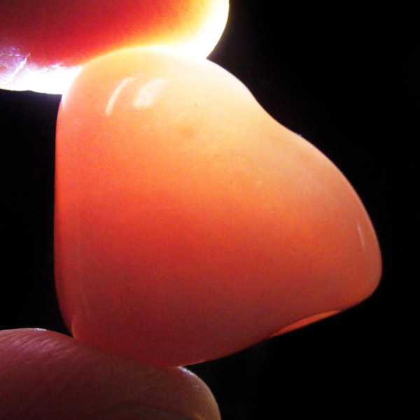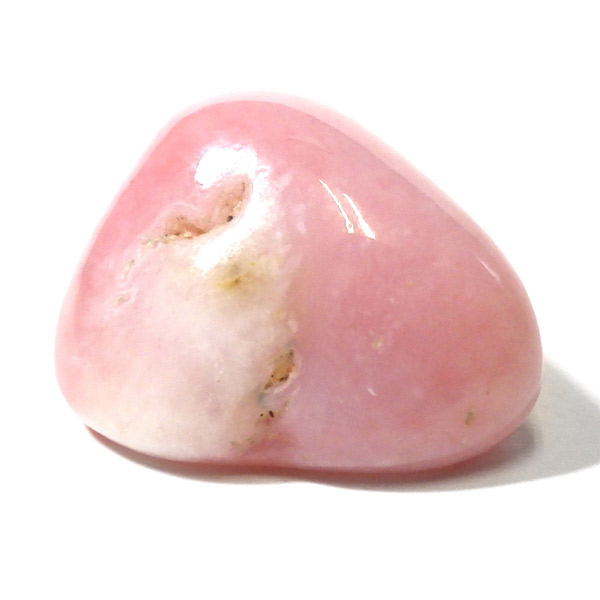 ペルー産のピンクオパール、タンブルです。ピンクオパールは、南米ペルーのアンデス山脈地帯で採掘される、美しいミルキーピンクの色合いの希少な天然石です。主にペルーでのみ産出されるため、流通量は限られており希少です。ピンクオパールはオパールの中でも遊色効果を持たないコモンオパールの一種で、パステルカラーの優しいピンクが魅力的です。乳白がかった淡いピンクからやや濃いめのピンクまで様々ですが、発色の良いものを厳選しております。