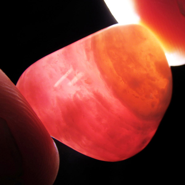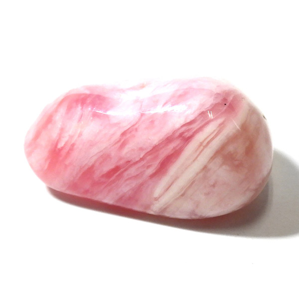 ペルー産のピンクオパール、タンブルです。ピンクオパールは、南米ペルーのアンデス山脈地帯で採掘される、美しいミルキーピンクの色合いの希少な天然石です。主にペルーでのみ産出されるため、流通量は限られており希少です。ピンクオパールはオパールの中でも遊色効果を持たないコモンオパールの一種で、パステルカラーの優しいピンクが魅力的です。乳白がかった淡いピンクからやや濃いめのピンクまで様々ですが、発色の良いものを厳選しております。