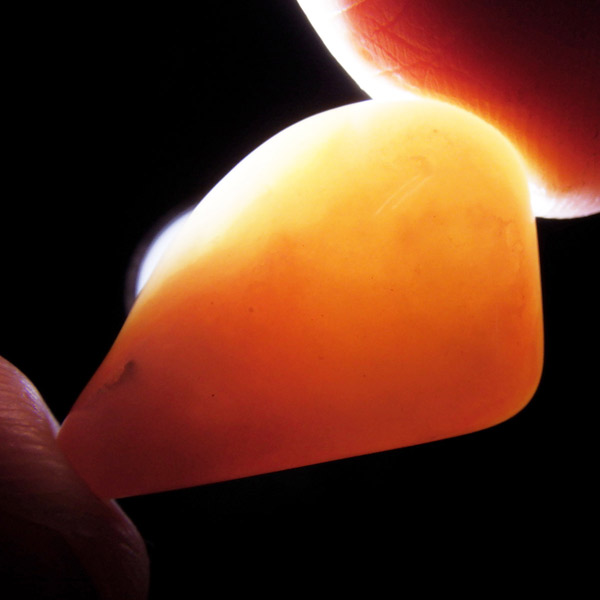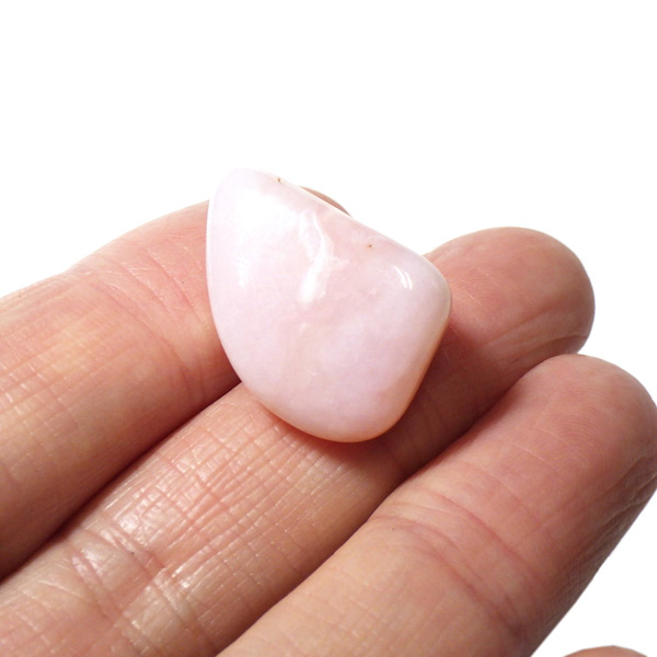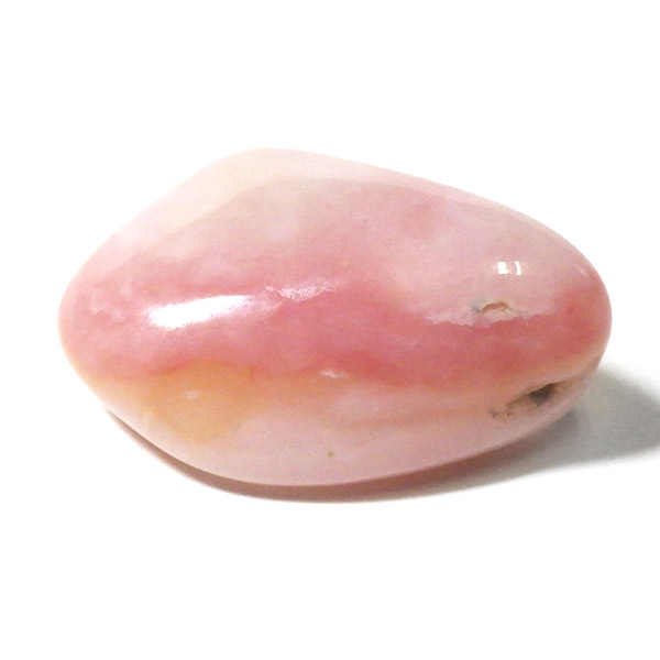 ペルー産のピンクオパール、タンブルです。ピンクオパールは、南米ペルーのアンデス山脈地帯で採掘される、美しいミルキーピンクの色合いの希少な天然石です。主にペルーでのみ産出されるため、流通量は限られており希少です。ピンクオパールはオパールの中でも遊色効果を持たないコモンオパールの一種で、パステルカラーの優しいピンクが魅力的です。乳白がかった淡いピンクからやや濃いめのピンクまで様々ですが、発色の良いものを厳選しております。