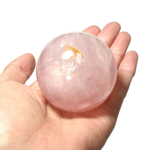 ブラジル産ローズクォーツ球です。 手のひらに収まるちょうど良いサイズ感で、デスクやお部屋に置いて癒しのインテリアアイテムとしても人気があります。 高品質なブラジル産らしい美しいピンクカラーが魅力で、光にかざすとほんのりとした透明感も楽しめます。特にこのローズクォーツは、内側から発光するようなやさしい色合いが特徴的で、見ているだけで穏やかな気持ちにさせてくれます。また、ライトなどで光を当てると若干ですがスターが見られます。