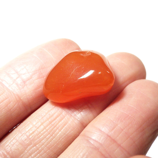 ボツワナ産カーネリアンのタンブルです。 発色が良く、濃いオレンジが美しいカーネリアンのタンブルを厳選しています。色ムラもほとんどなく、まるで綺麗なドロップのようです。