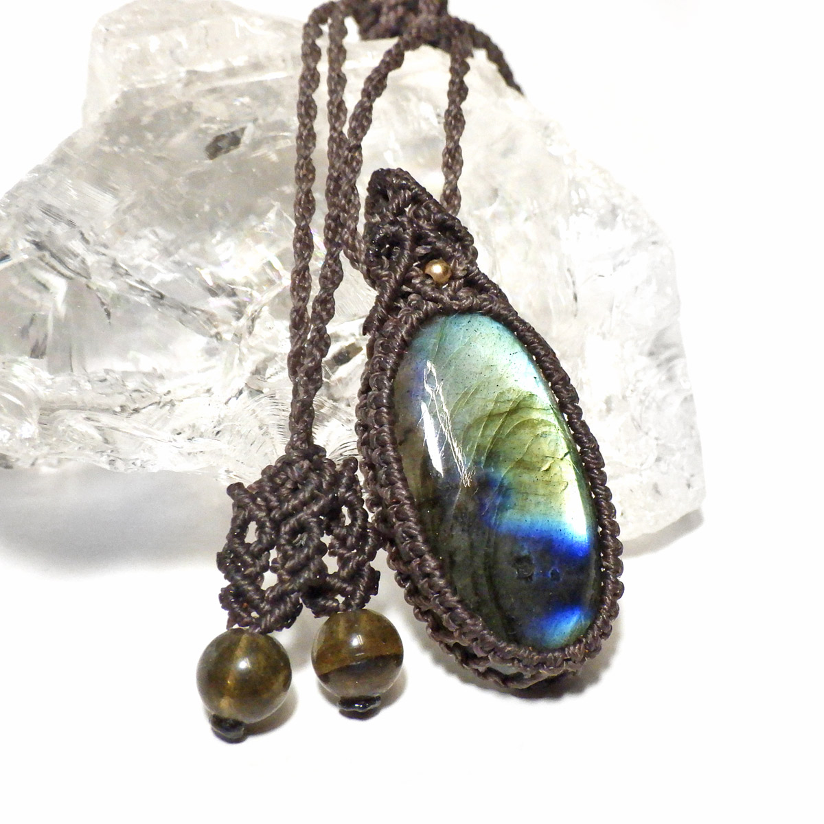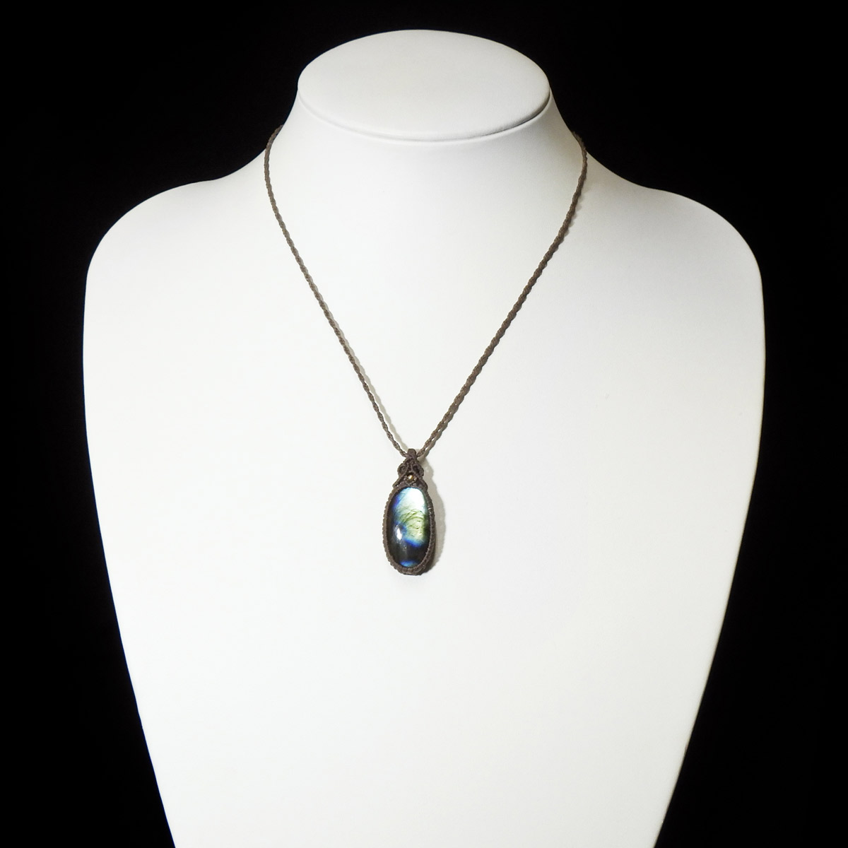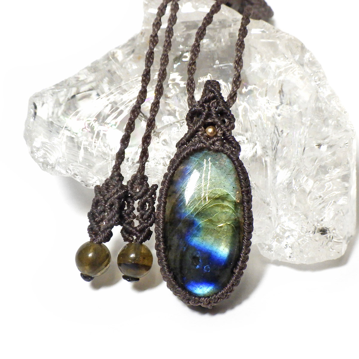 マダガスカル産のラブラドライトを使用したマクラメペンダントです。