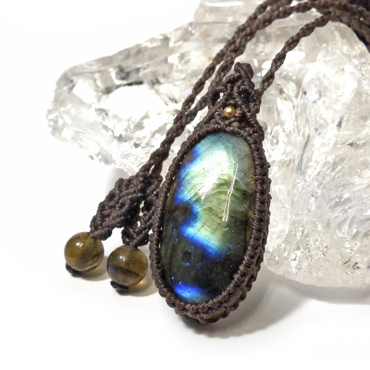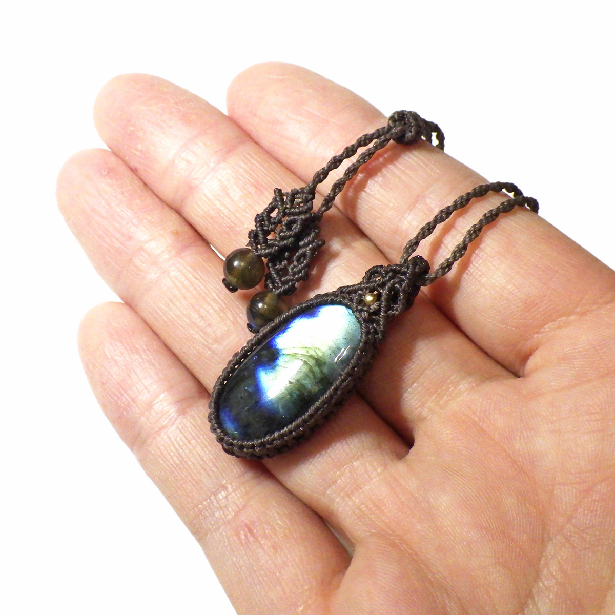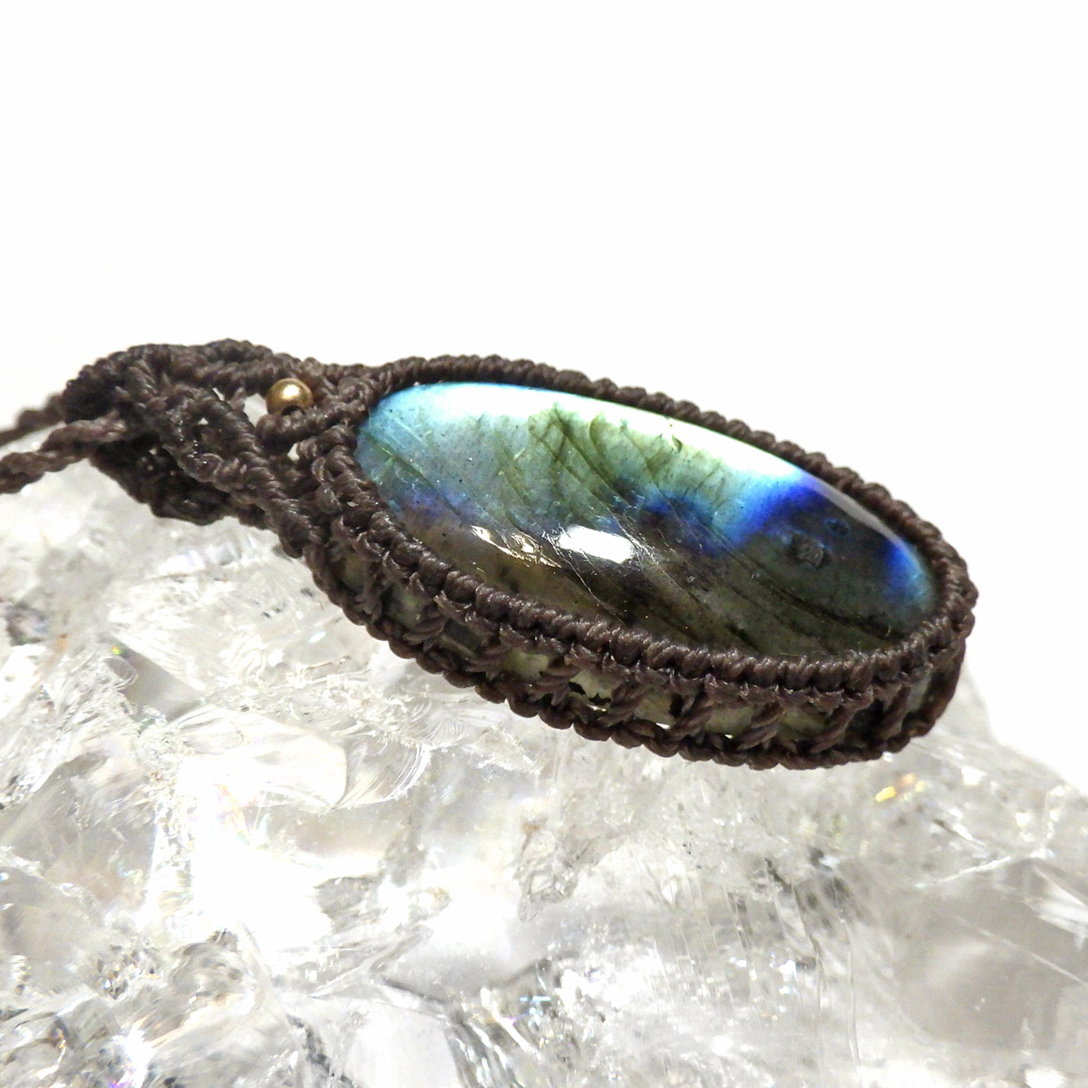 マダガスカル産のラブラドライトを使用したマクラメペンダントです。